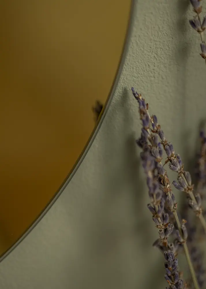 Den här runda spegeln är elegant och stilren – samtidigt som den känns lyxig och exklusiv. Det beror på den lyckliga kombinationen av effektfulla detaljer och avskalad form. Spegeln är tunn och har ingen ram, vilket bidrar till den stilrena framtoningen. Det guldtonade spegelglaset bidrar i sin tur till att lyfta helheten och tillföra en känsla av exklusivitet.