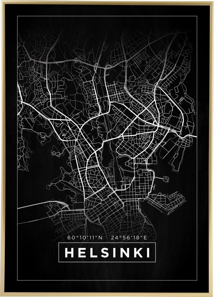 Karta - Helsinki - Svart Poster (13x18 cm)