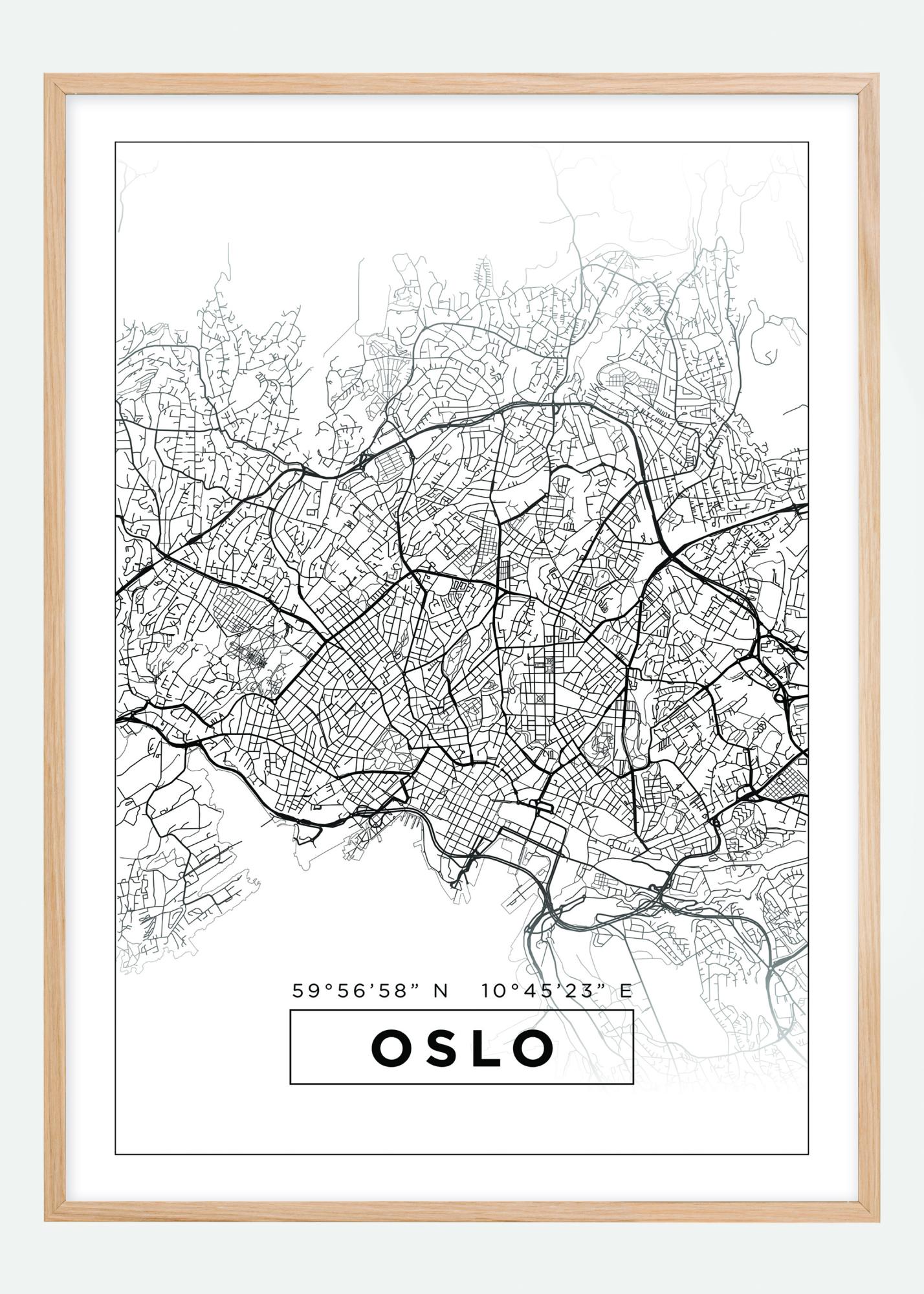 Karta - Oslo - Vit Poster
