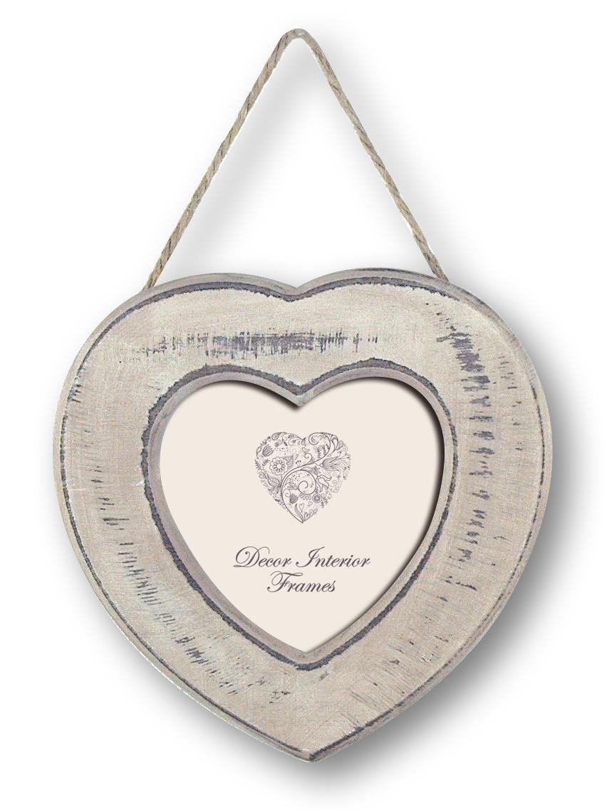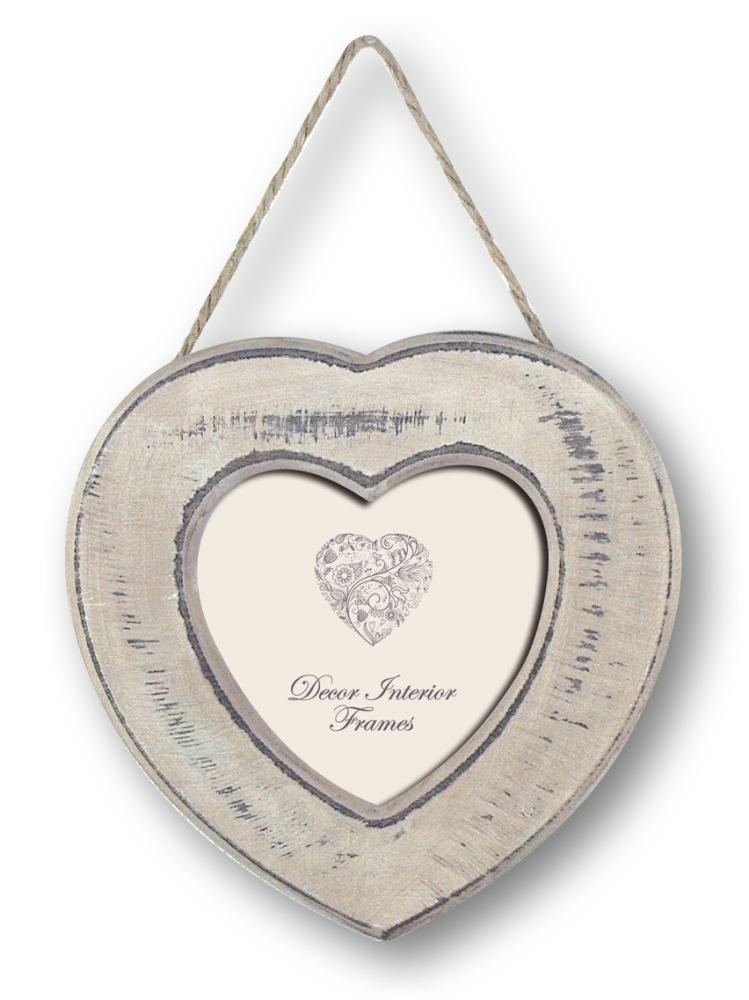 Starta ramväljaren »Le Havre är en fin ljusgrå hjärtformad vintageram färdig för vägghängning med sitt retroinspirerade hampasnöre.