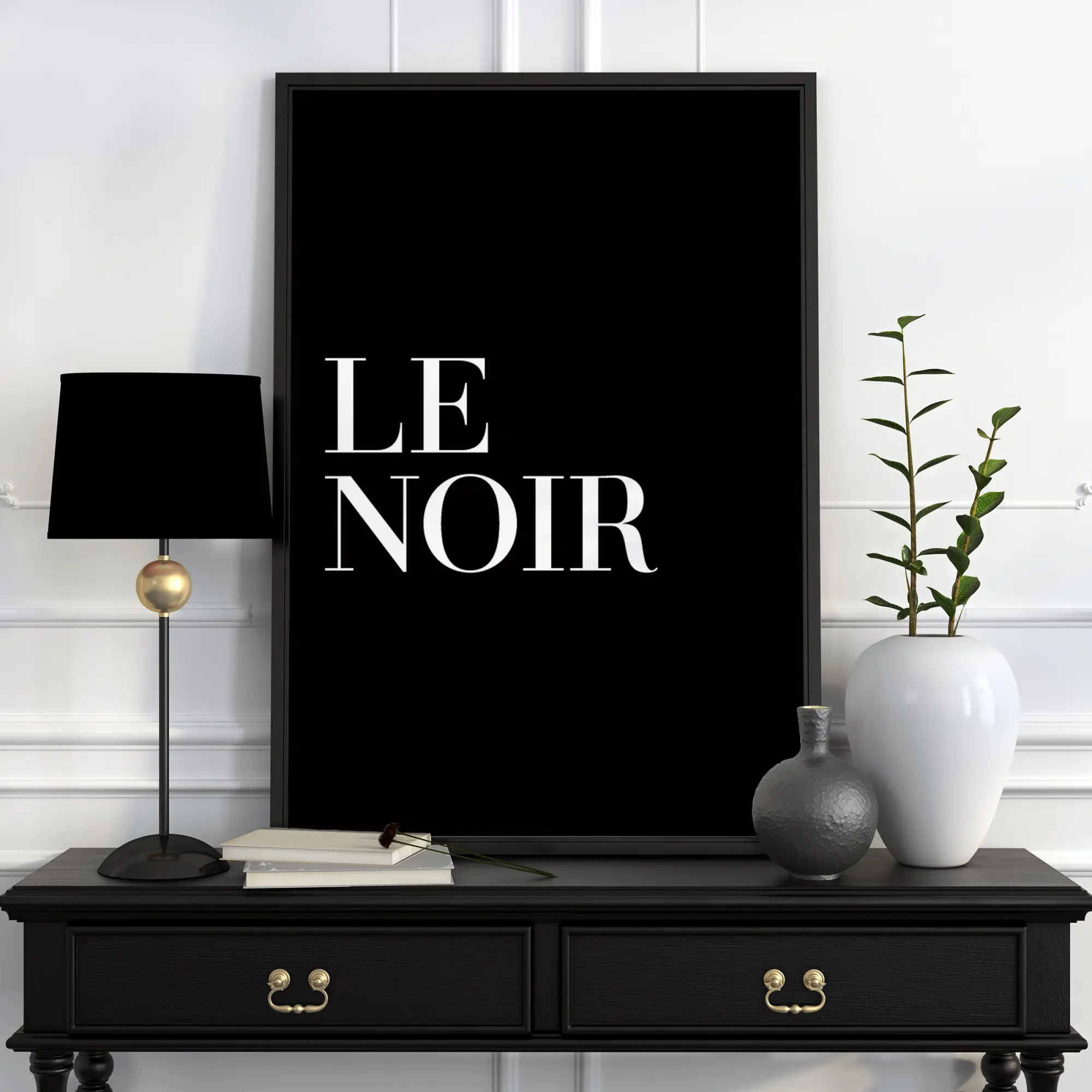 En enkel och minimalistisk textposter med texten "Le Noir", Det svarta, i stora vita versaler mot en svart bakgrund. En poster som passar perfekt att ha på en större tavelvägg, kanske i kombination med postern "Le Blanc", Den vita? Komplettera gärna med något ur vårt stora sortiment av ramar.