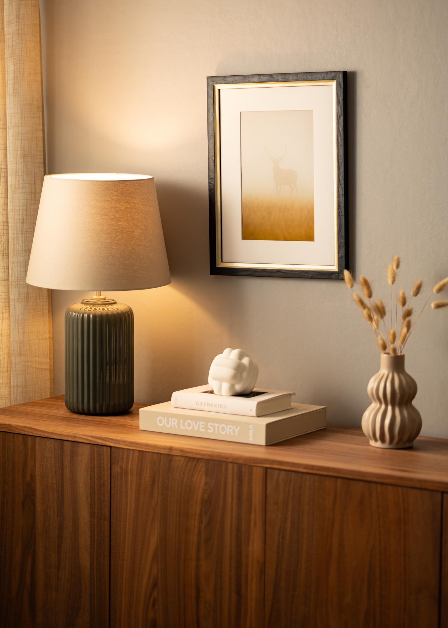 "Leonie" är en bred fotoram tillverkad i Italien vilket borgar för hög kvalité och snygg design. Ramen har en elegant profil i svart med en tydligt strukturerad yta med en bred silverkant närmast motivet.