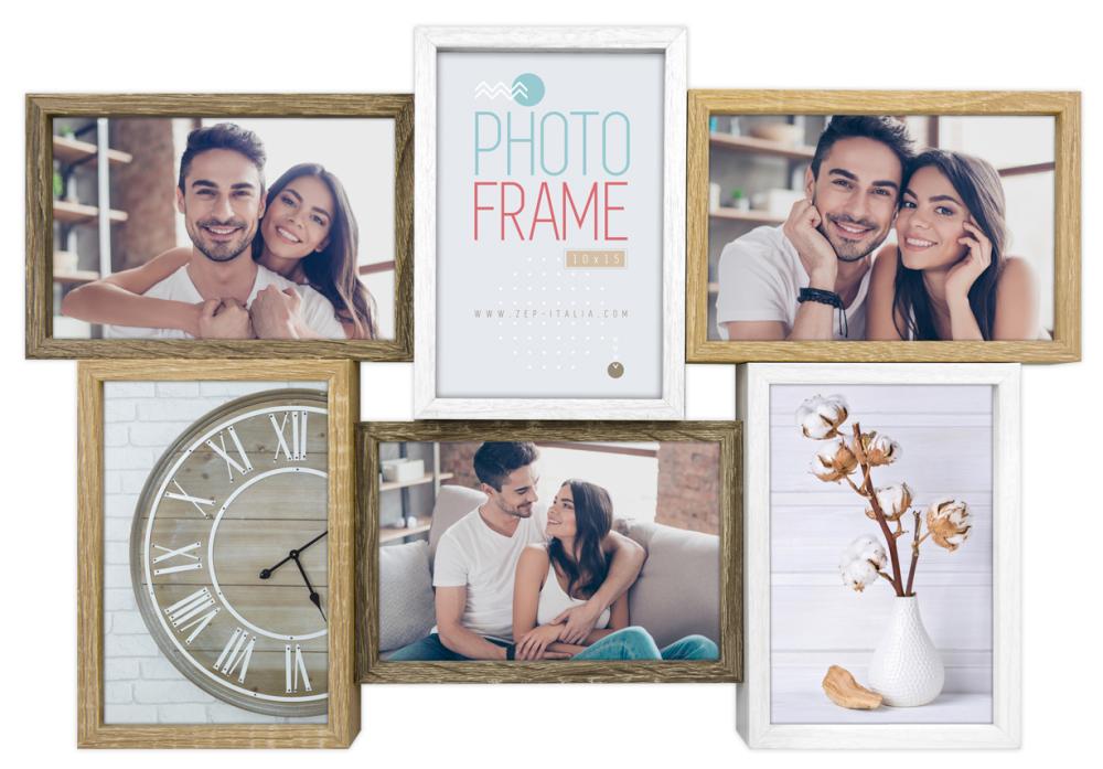 Snygg collageram tillverkad i trä. Ramen går i flera olika nyanser men har ändå en stilren design med nätta ramar i naturnära toner. Varför inte samla dina 6 finaste fotominnen och föreviga dem i den här ramen så att du alltid kan se tillbaka på dem! Denna collageram rymmer 6 motiv i storleken 13x15 cm. Väggfäste finns.