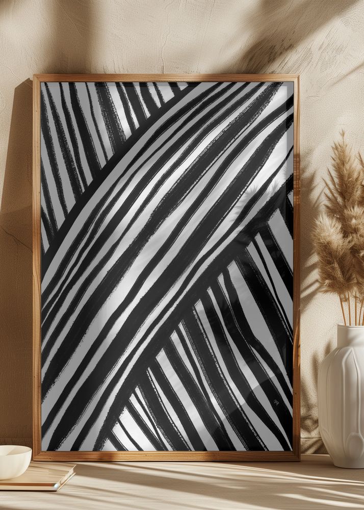 Färgpaletten är strikt begränsad till svart och vitt, vilket gör denna affisch till en tidlös och mångsidig bit som kompletterar en rad färger och designestetik. Tack vare dess enkla men ändå suggestiva mönster kan denna print enkelt integreras i ett galleriväggarrangemang eller hängas enskilt för att göra ett djärvt uttalande. Dess abstrakta natur gör att det kan tolkas på många olika sätt, vilket säkerställer att det kommer vara ett samtalsämne bland dina gäster.