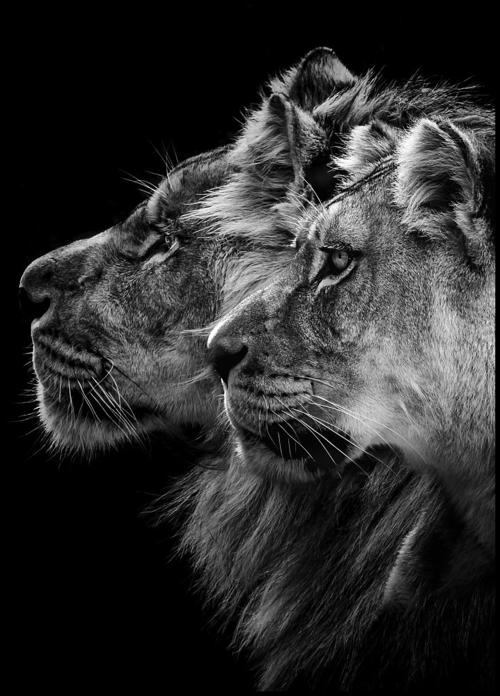Lion and lioness portrait Poster (13x18 cm)