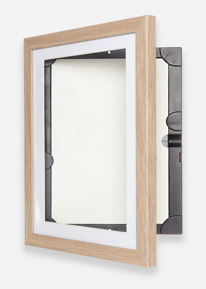 Enkel och smidig teckningsram i storlek A4. Perfekt för barnens alla teckningar. Byt enkelt ut teckningarna i ramen allteftersom nya konstverk tillverkas. Ramen öppnas enkelt från sidan. Da Vinci teckningsram är en stilren ram och passar överallt i hemmet. Den tar varsamt hand om barnens teckningar så att dom sparas i tryggt förvar. Varför inte låta barnet stoltsera med att få sina bilder inramade och uppsatta på väggen i sitt rum? Perfekt present på födelsedagen eller julafton, som uppskattas av både stora och små. Låt teckningarna, fotografier eller diplom få en praktisk, enkel ram och bli en del av inredningen.