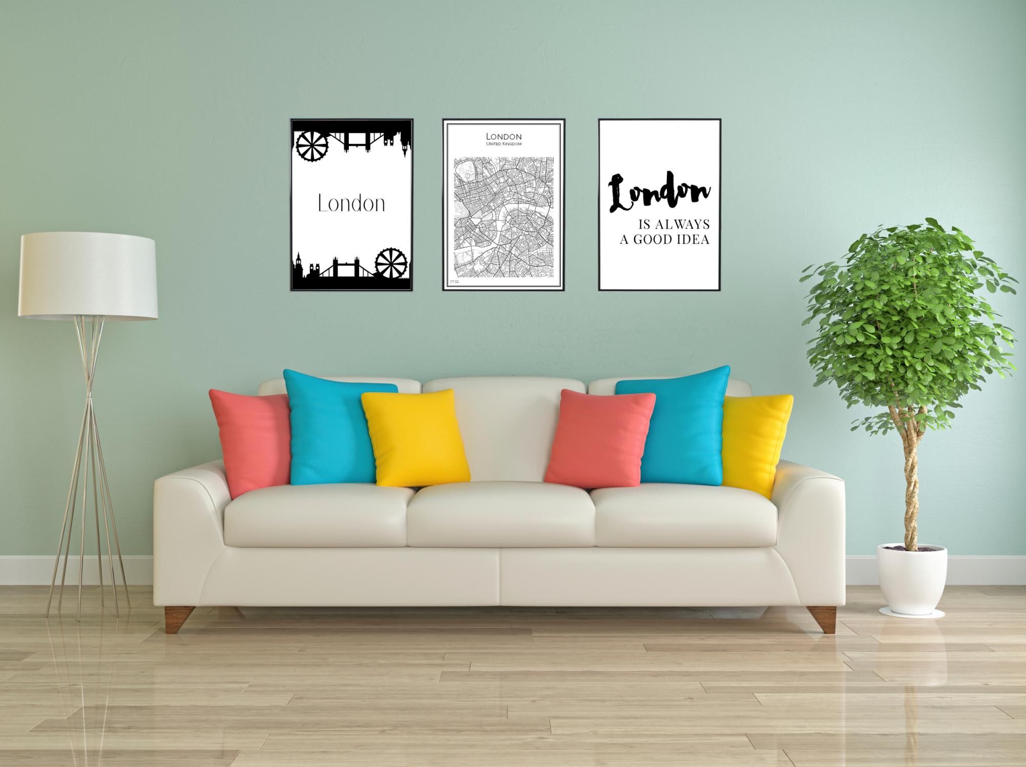 Affischen för den som är besatt av London och gärna smiter iväg på en weekend så fort ett tillfälle ges. Det grafiska trycket är snyggt att hänga tillsammans med andra Londonmotiv, som kartor och fotografier, på en temavägg som blir ett blickfång i rummet. Postern gör sig bra i en svart eller vit tunnare ram som låter motivet tala och den stilrena tavlan passar fint in i alla typer av inredningsstilar och miljöer.