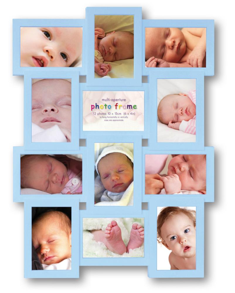 Med Maggiore XV Blå har du en söt collageram med plats för hela 12 bilder i både liggande och stående format. Ett utmärkt val för att minnas din bebis första tid.