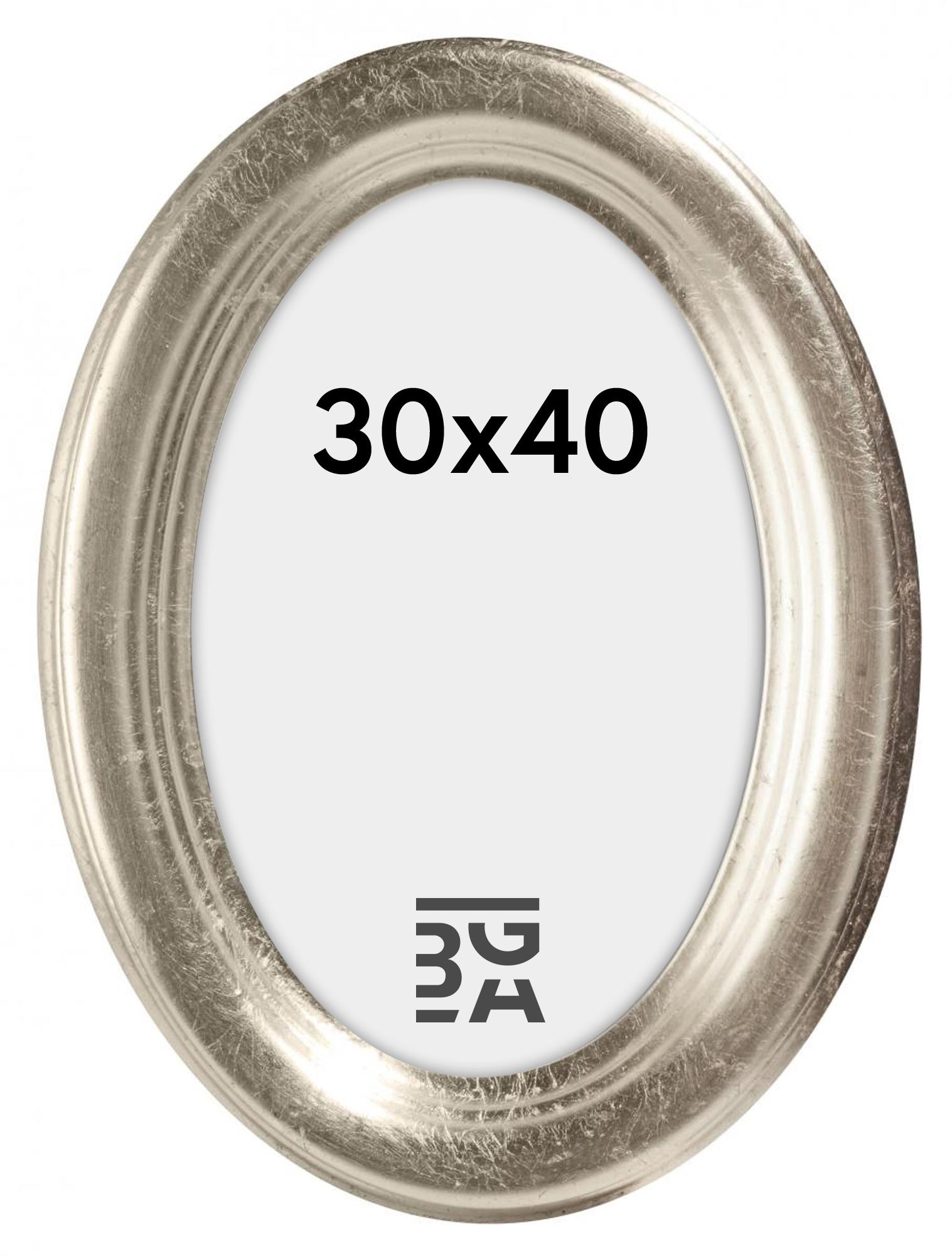 Starta ramväljaren »Klassisk oval fotoram i trä med en läcker silverfärgad profil, perfekt när du söker en porträttram av hög kvalité som dessutom är tillverkad i Italien.