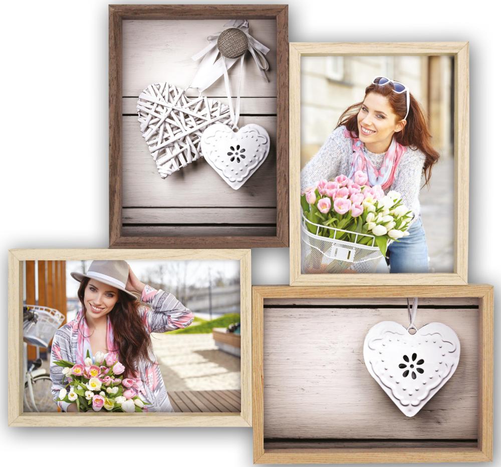 Varje bild i collageramen kan ha en storlek på 10x15 cm, vilket är en vanlig storlek för fotografier. Ramen är tillverkad av trä, vilket ger en naturlig och tidlös känsla som passar in i de flesta hem.