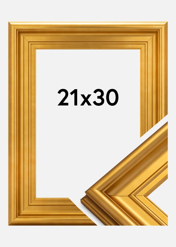 Mora Premium Guld är en av våra finaste tavelramar. Tillverkad av trä från våra fina Svenska skogar och monterad i vår egen ramverkstad. Det gör att vi kan utlova en kvalité utöver det vanliga. Ramen har en mjukt guldfärgad profil i gammal målad stil med en bredd på hela 57 mm. Perfekt till dina finaste bilder!
