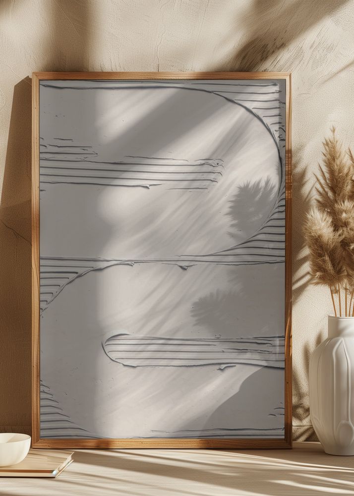 Färgpaletten i detta motiv är en harmonisk blandning av krämiga beige och mjukt vita toner som återfinns genom hela affischen, vilket gör den idealisk för att skapa en subtil men ändå distinkt väggdekoration. Den här affischen kan enkelt integreras i olika inredningsstilar och kommer att komplettera varje rum med dess diskreta elegans och moderna charm. Dess fina nyanser och texturer skapar en känsla av djup och rörelse inom den stilla kompositionen.