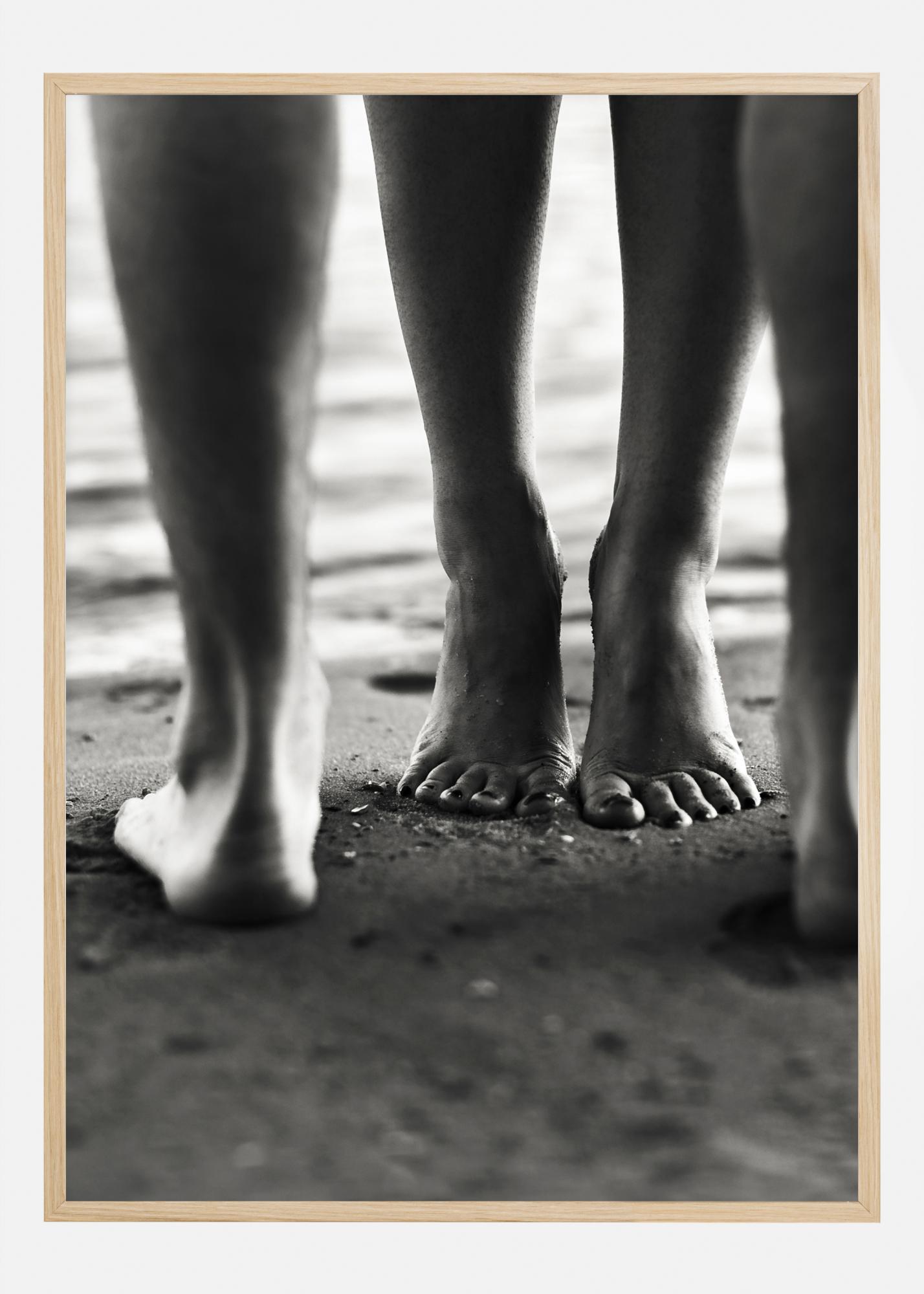 En romantisk poster med en svartvit närbild av fyra ben på en strand. Bilden gestaltar två personer som står vända mot varandra. Blicken fastnar lätt på figuren som står på tå. Det här vackra trycket ger en romantisk känsla och passar i ditt sovrum när du önskar en touch av romantik.
