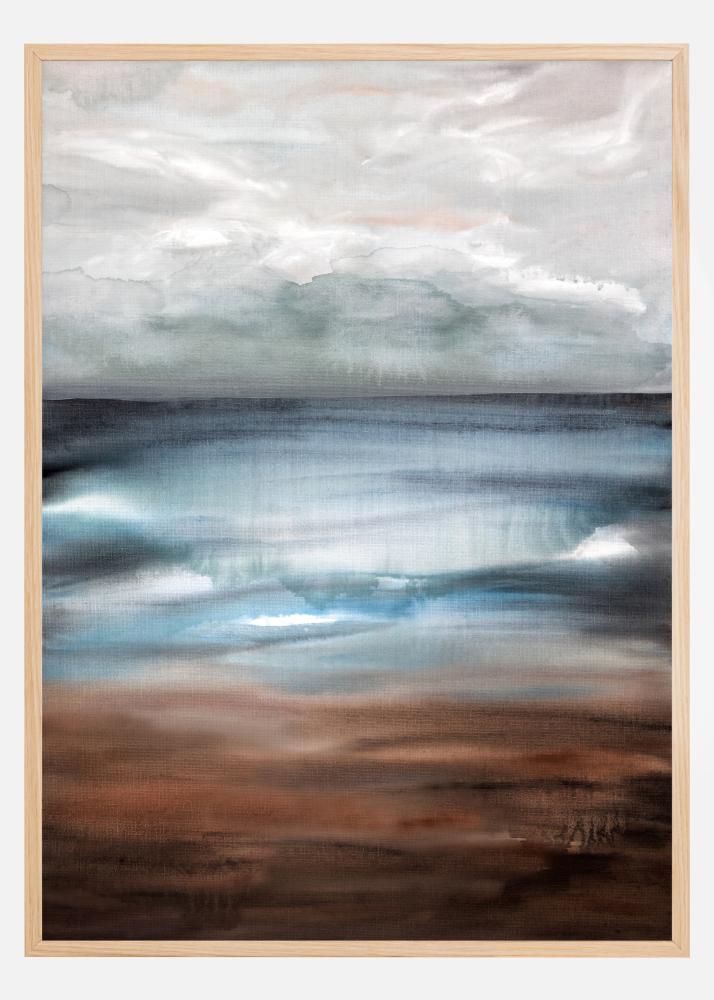 En avslappnande representation av en ny dag. De mjuka pastellfärgerna visar den molniga morgonen med dimma över havet. Horisonten smälter perfekt samman med de grå och vita molnen. Med Den här avslappnande och lugnande postern på väggen kan du nästan höra havet.