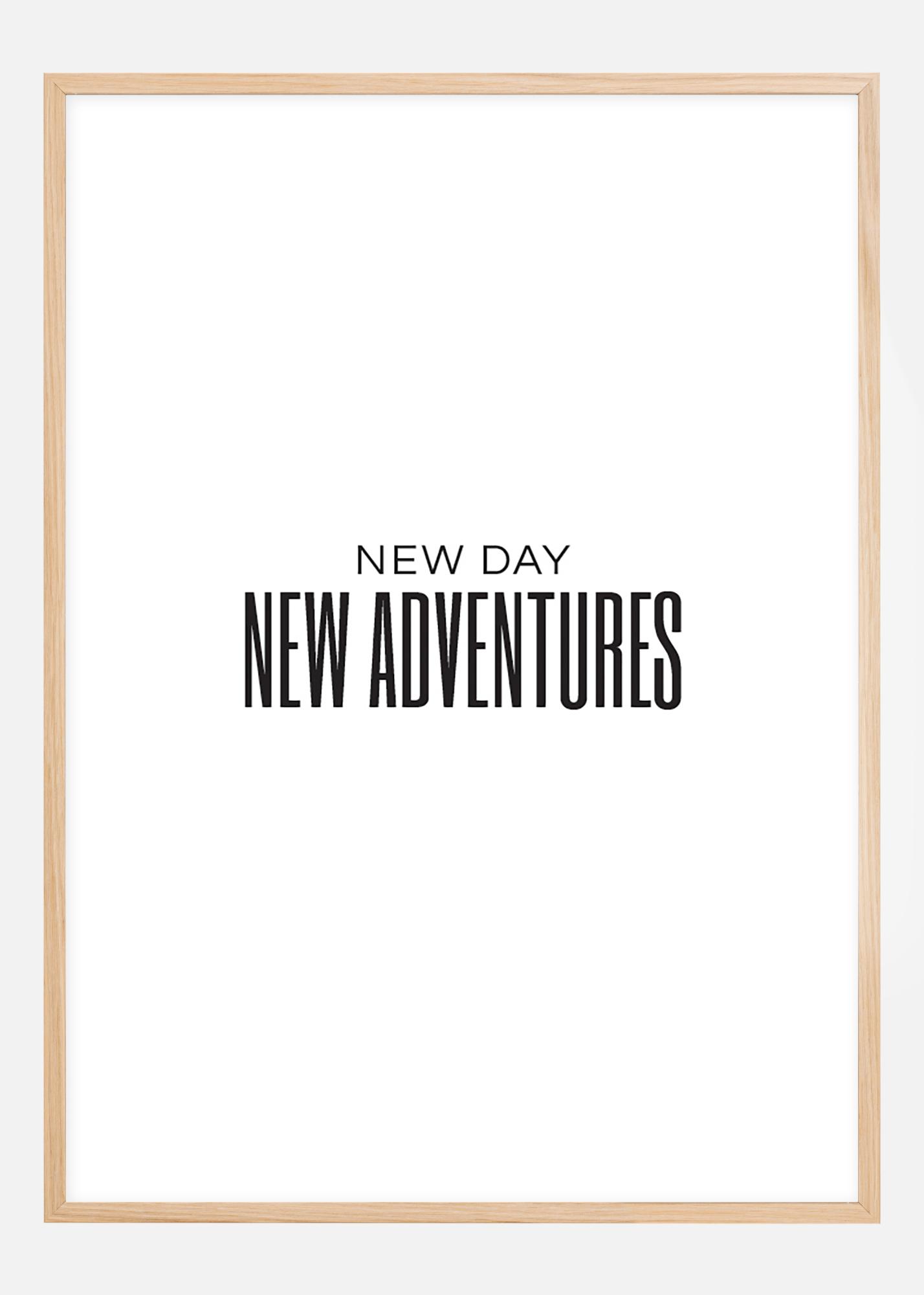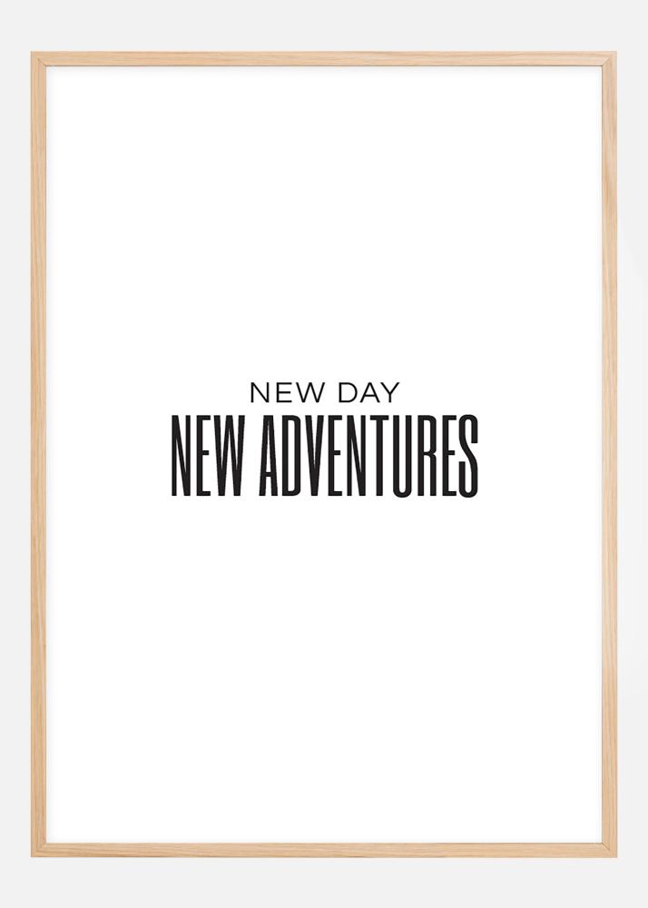 En enkel och stilren poster med stora versaler och budskapet "New day, New adventures". Textposters är perfekta inslag i större collage och tavelväggar. Komplettera gärna med något ur vårt stora sortiment av ramar.