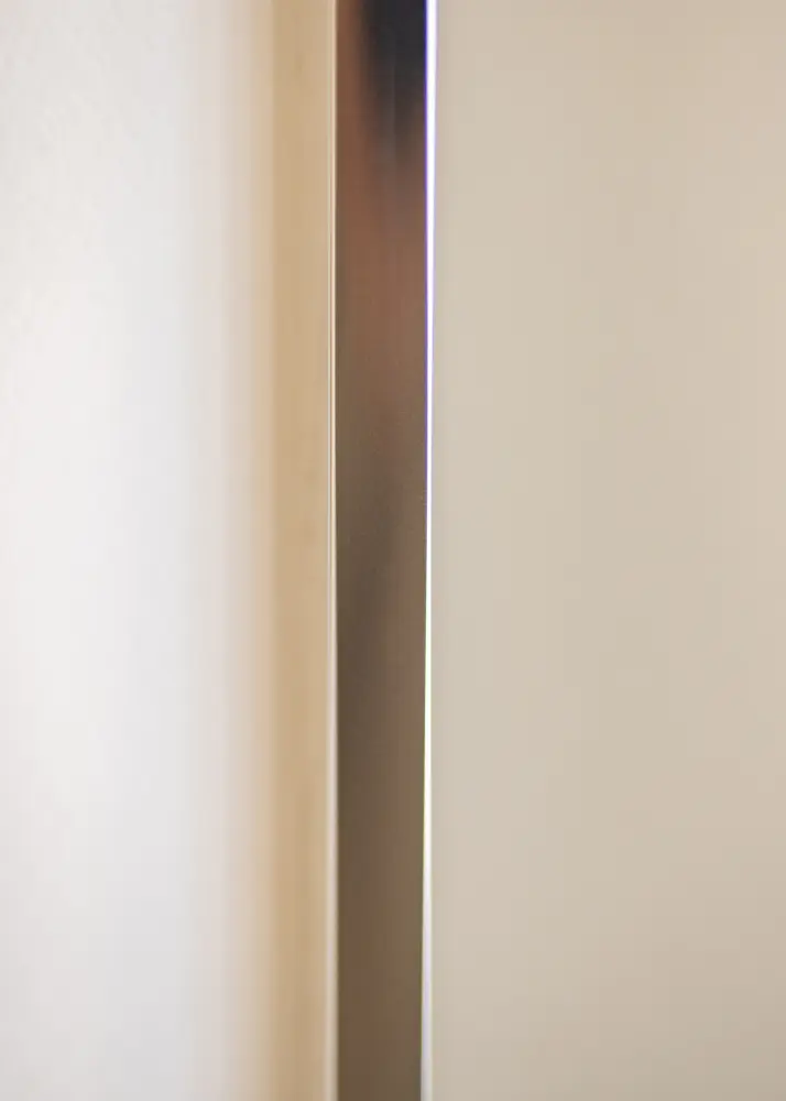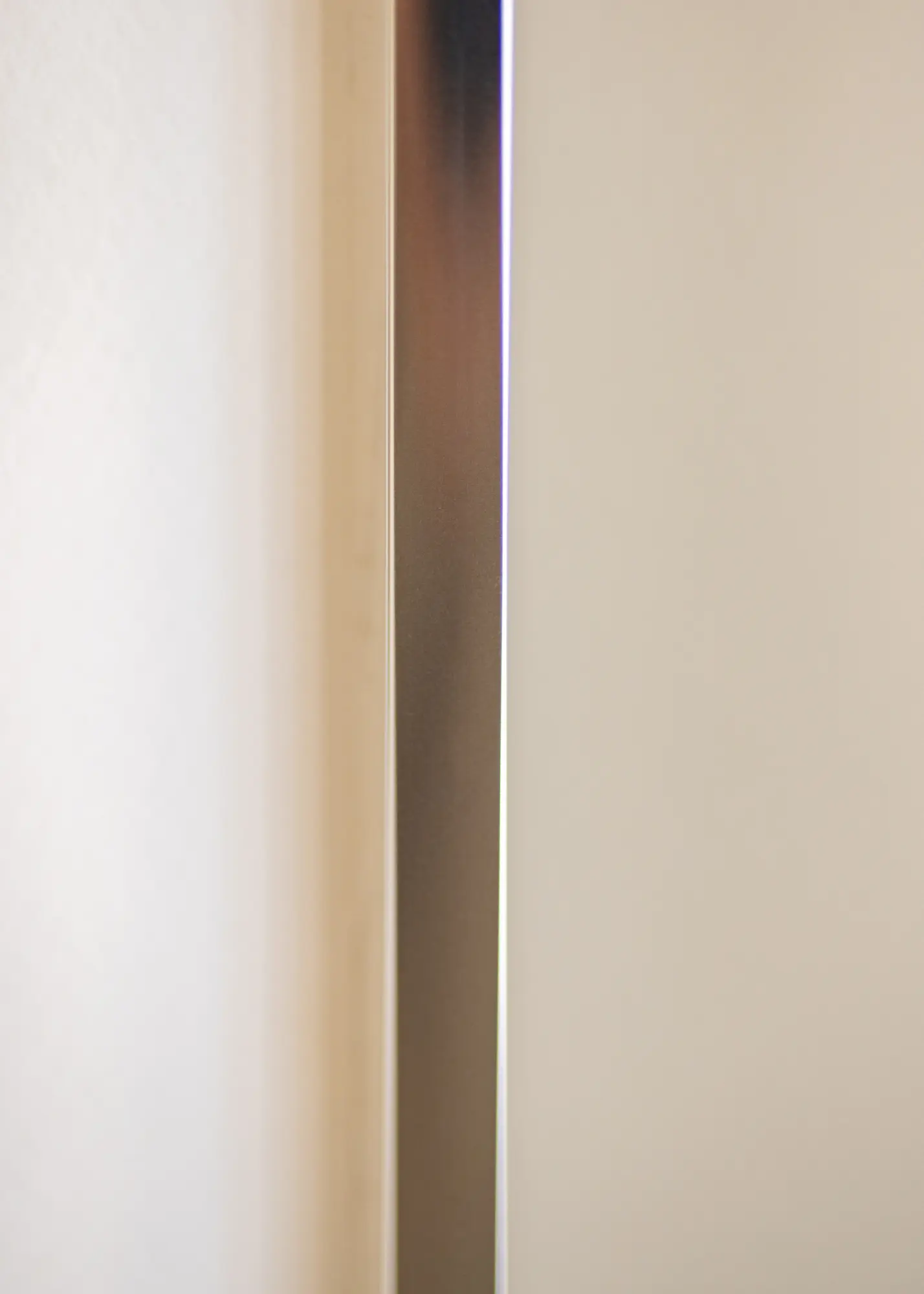 Stilren blank silverfärgad tavelram av hög kvalité, tillverkad i Tyskland med en tunn ramlist av aluminium. Den minimalistiska designen på ramen gör att den passar bra in i hemmet med en avskalad inredningsstil och den diskreta ljusgrå silverfärgen passar lika bra att rama in fotografier som posters med. Det stora urvalet av storlekar gör att ramen är perfekt att använda till ett tavelkollage där samlingen av tavlor hålls ihop med hjälp av valet av ram. Bra att veta: -Högblank ram - Endast 7,8 mm bred