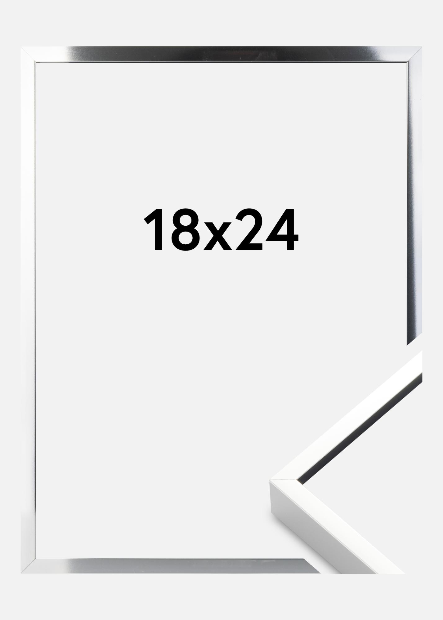 Stilren blank silverfärgad tavelram av hög kvalité, tillverkad i Tyskland med en tunn ramlist av aluminium. Den minimalistiska designen på ramen gör att den passar bra in i hemmet med en avskalad inredningsstil och den diskreta ljusgrå silverfärgen passar lika bra att rama in fotografier som posters med. Det stora urvalet av storlekar gör att ramen är perfekt att använda till ett tavelkollage där samlingen av tavlor hålls ihop med hjälp av valet av ram.