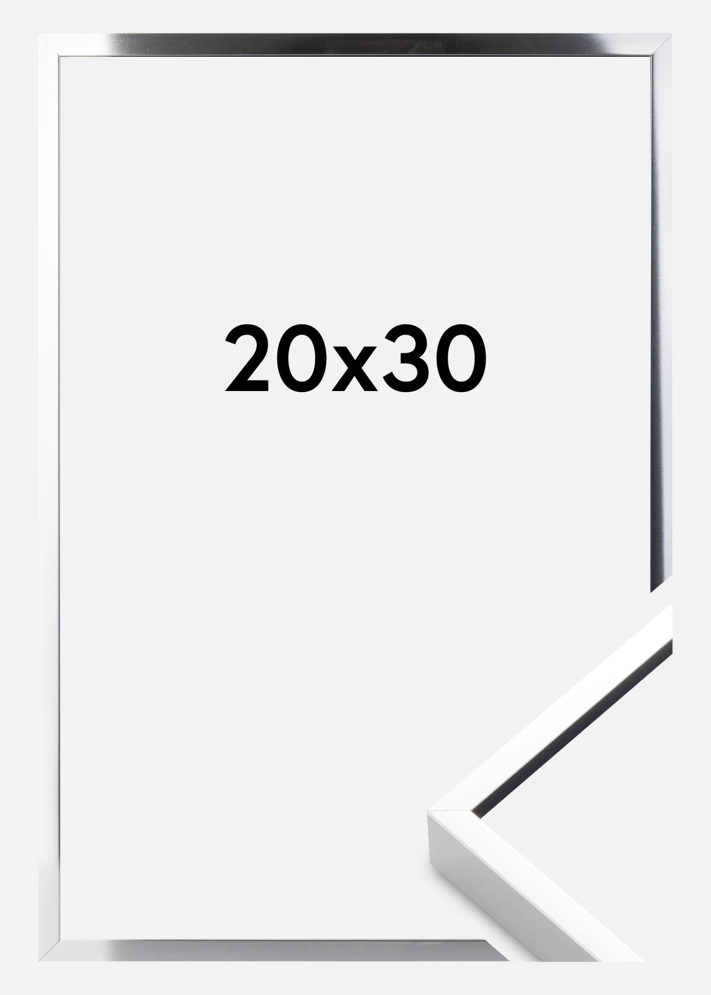 Stilren blank silverfärgad tavelram av hög kvalité, tillverkad i Tyskland med en tunn ramlist av aluminium. Den minimalistiska designen på ramen gör att den passar bra in i hemmet med en avskalad inredningsstil och den diskreta ljusgrå silverfärgen passar lika bra att rama in fotografier som posters med. Det stora urvalet av storlekar gör att ramen är perfekt att använda till ett tavelkollage där samlingen av tavlor hålls ihop med hjälp av valet av ram.