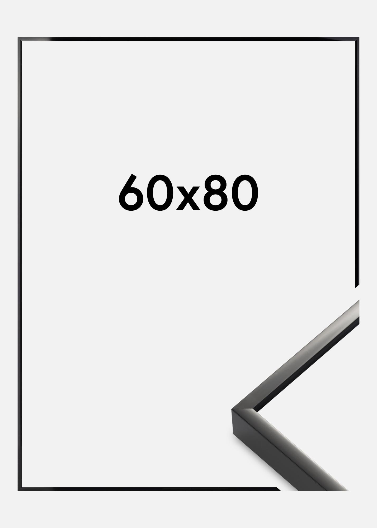 Elegant premiumram med en högblank tunn svart ramlist som passar perfekt in i en modern stilren interiör. Ytskiktet på ramen och den minimalistiska känslan i den smäckra designen gör att den är fin att använda till grafiska posters och svartvita fotografier. Tavelramen tillverkas av aluminium och finns i många olika storlekar, vilket gör att den är ett bra alternativ när man vill skapa en tavelvägg med bilder i flera olika format som hålls ihop av ramvalet.
