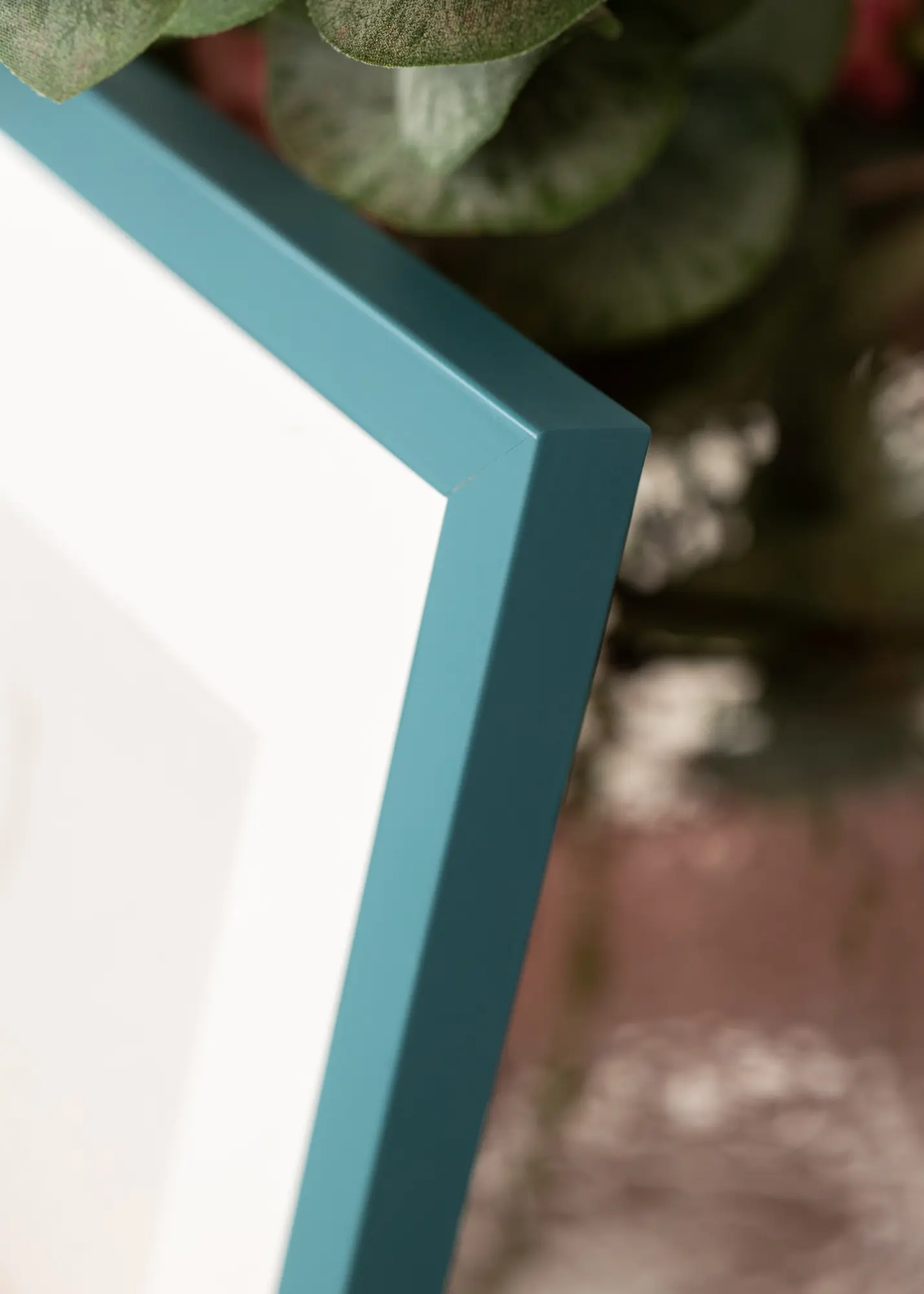 Denna stilfulla ram kommer från danska Incado och tillhör serien NordicLine. Ramen är tillverkad i trä och har en stilren fyrkantig profil med en listbredd och ett listdjup som båda mäter 15 mm. Folierad med en matt yta i en elegant mörkturkos nyans blir denna ram en härlig, dov färgklick i ditt hem.