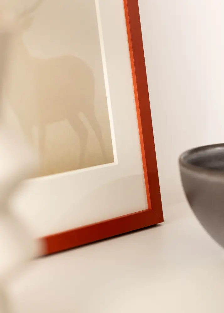 En vacker träram med en modern fyrkantig profil där både listens bredd och listens djup mäter 15 mm. Ramen tillhör serien NordicLine från danska Incado och har en mycket avskalad och elegant design. Fotoramen har en folierad, men stilfullt matt, yta i en jordig roströd nyans som gör att ramen harmoniserar väl med neutrala och naturnära toner men ändå blir en sober färgklick i ditt hem.