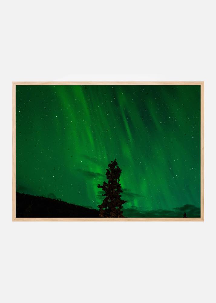 Norrskenets förmåga att fascinera upphör aldrig, det är ett av naturens med praktfulla fenomen. Ett nästan abstrakt fotografi med ett klart grönt sken är ett konstverk som verkligen tar plats på väggen och bör få det utrymme det kräver. Passar att hänga ensamt eller att kombineras med andra starka grafiska motiv som inte försvinner bredvid.
