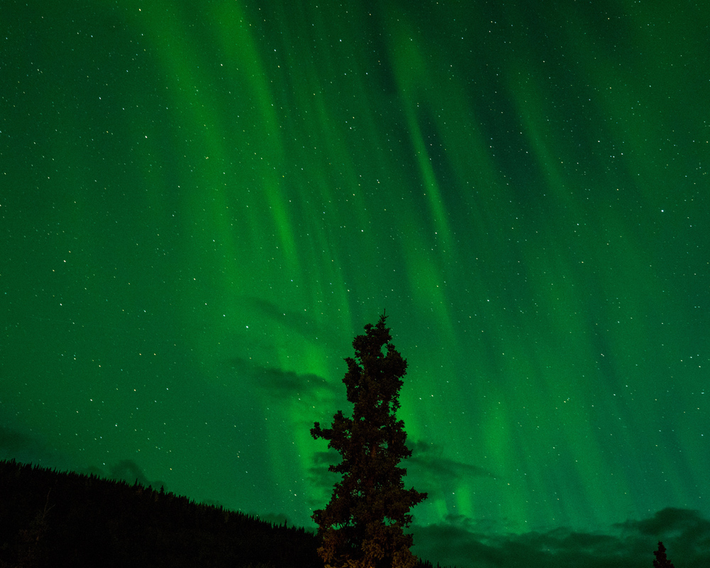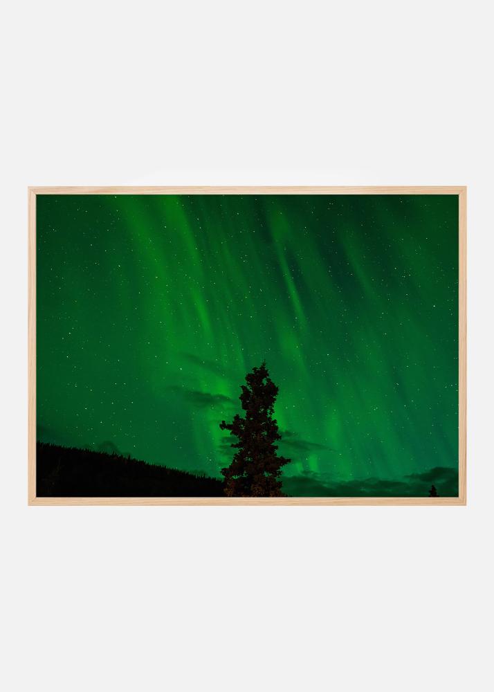 Norrskenets förmåga att fascinera upphör aldrig, det är ett av naturens med praktfulla fenomen. Ett nästan abstrakt fotografi med ett klart grönt sken är ett konstverk som verkligen tar plats på väggen och bör få det utrymme det kräver. Passar att hänga ensamt eller att kombineras med andra starka grafiska motiv som inte försvinner bredvid.
