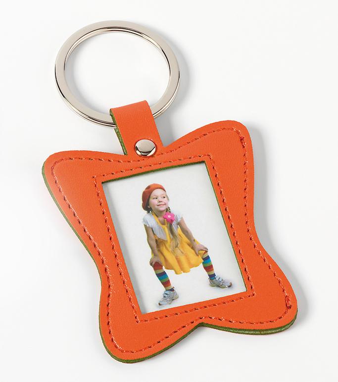 Fin nyckelring från klassiska Walther i orangefärgat konstläder med plats för en bild i 4x4,5 cm. Med denna nyckelring har du alltid din favoritbild nära.