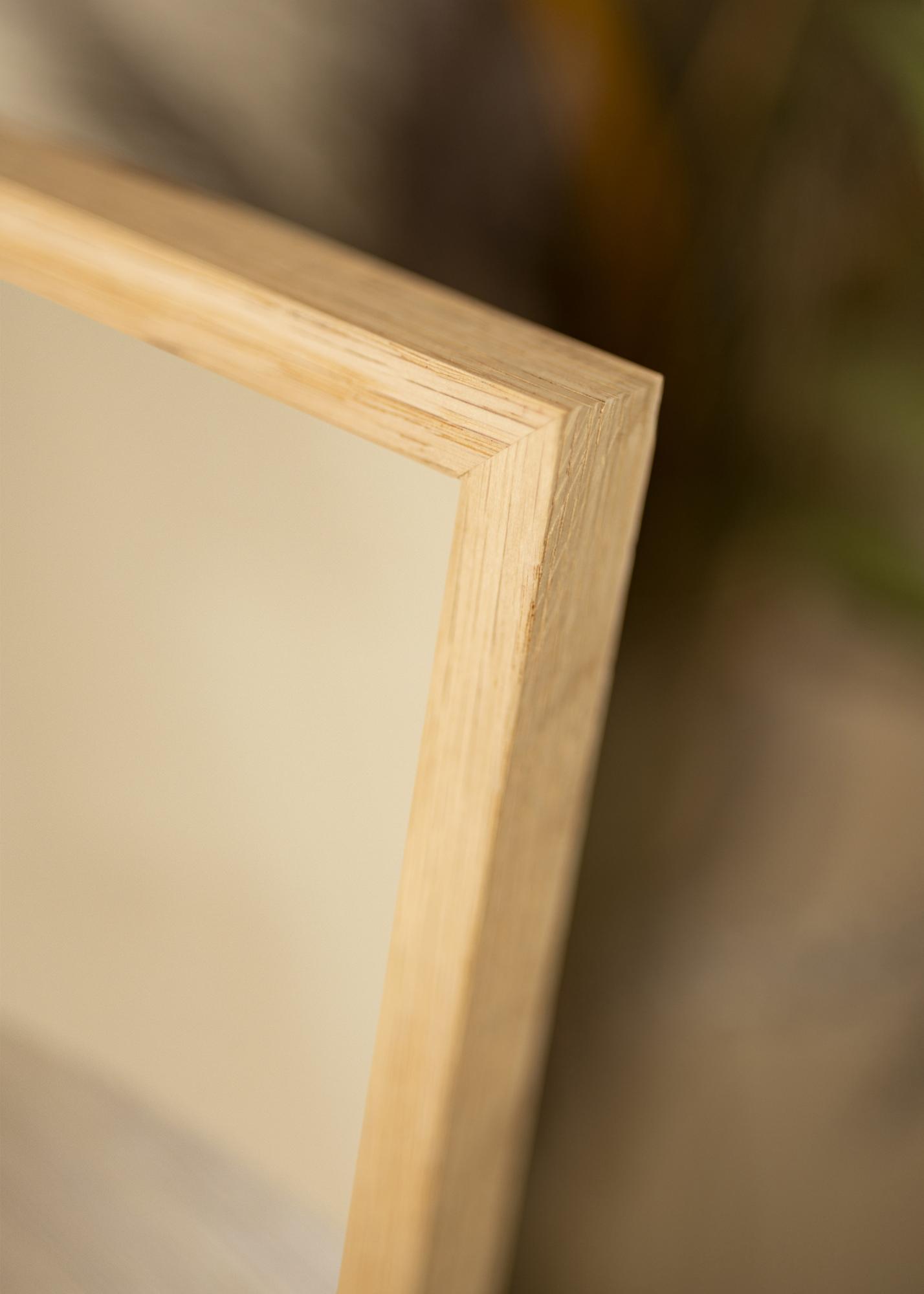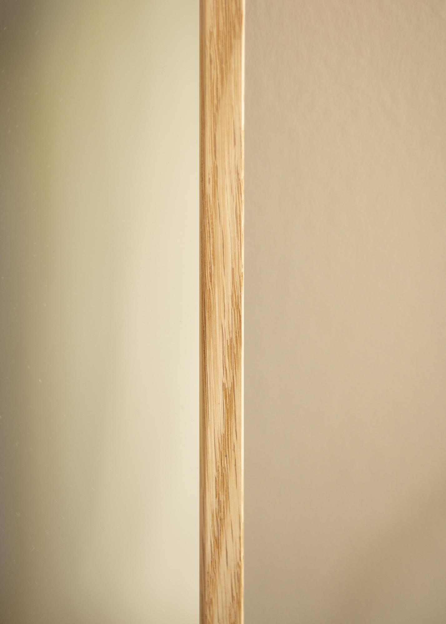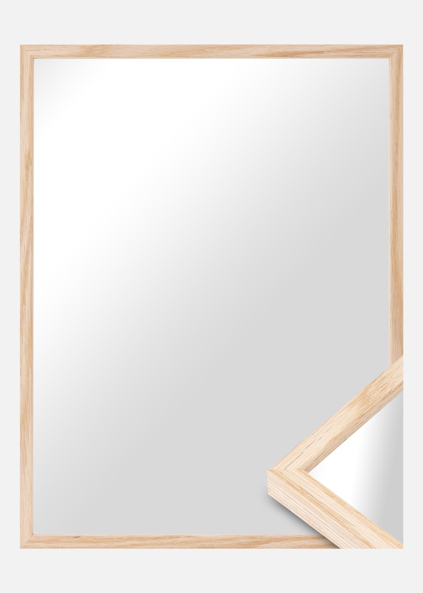 Den 12 mm breda ramlisten i trä ger spegeln en elegant inramning utan att ta över rummet. Den subtila designen gör att spegeln smälter in i de flesta miljöer samtidigt som den tillför en känsla av rymd och ljus. Med ett djup på 18 mm har spegeln en robust konstruktion som säkerställer att den hänger stabilt på väggen.