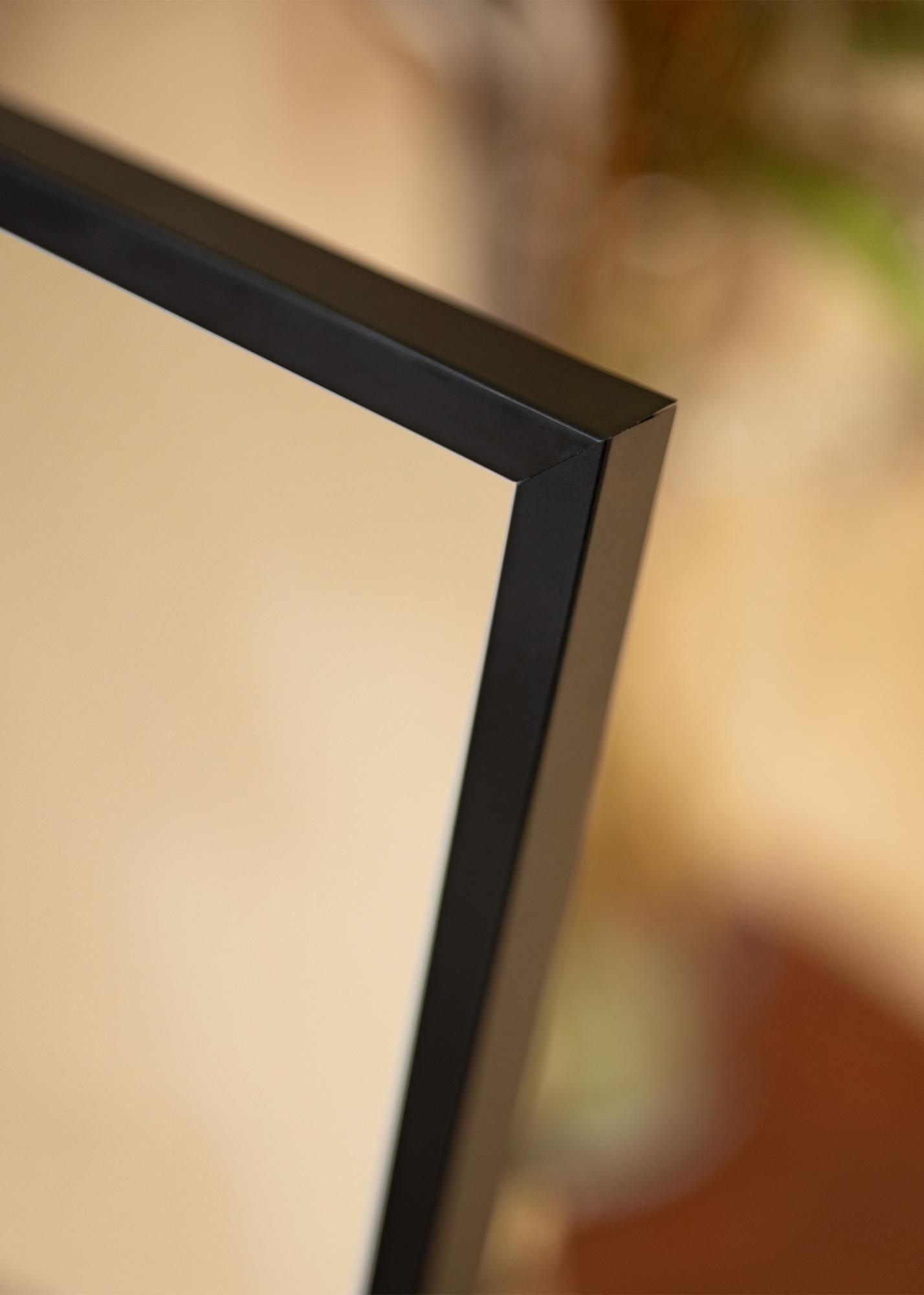 Ramen på Spegel Oslo Svart är 12 mm bred och tillverkad av furu, vilket ger en stabil och hållbar konstruktion. Djupet på spegeln är 18 mm, vilket gör den både robust och lätt att hantera vid montering. Den smala ramen ger spegeln ett minimalistiskt utseende samtidigt som den ramar in spegelytan på ett smakfullt sätt.