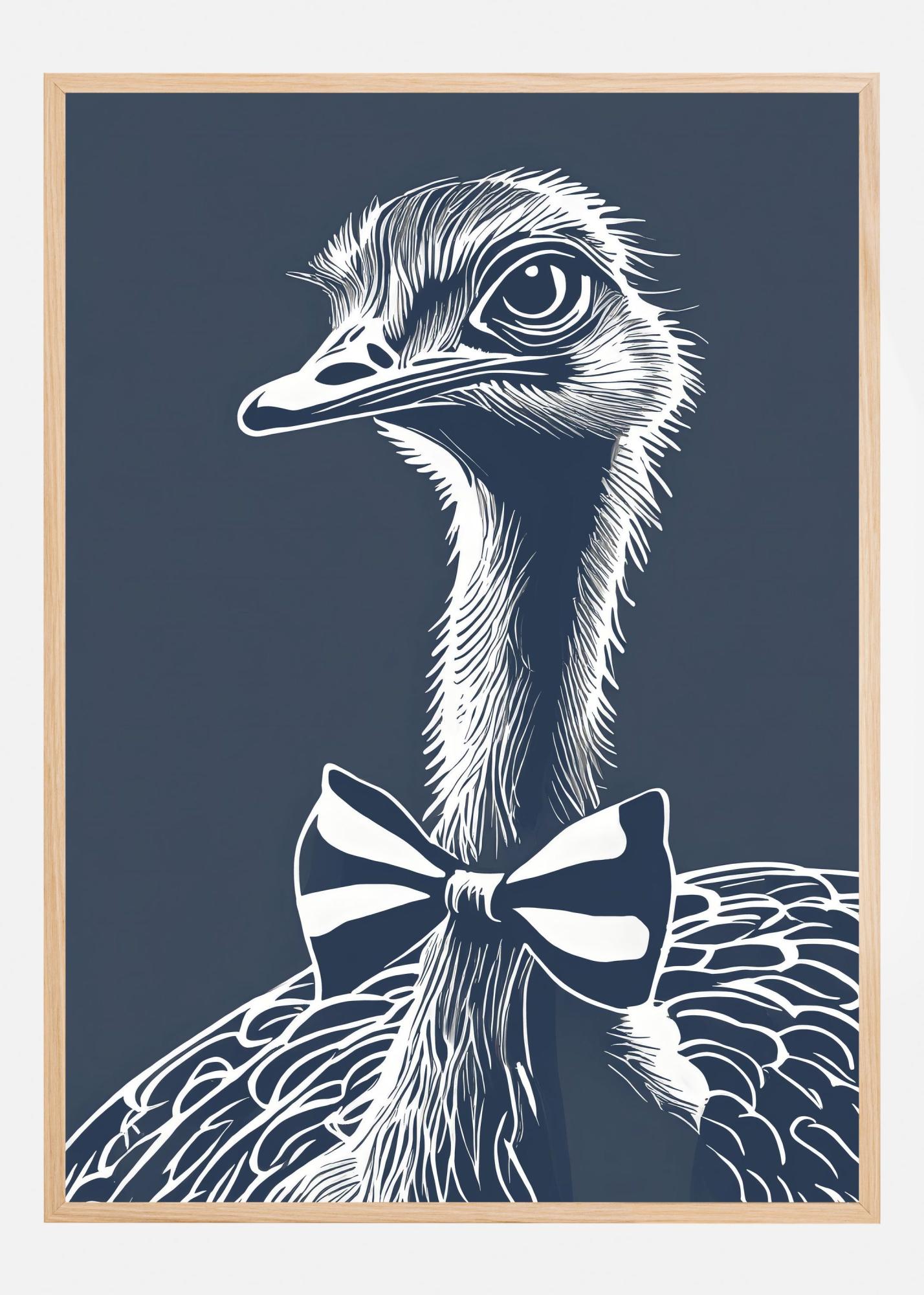 Färgsättningen i denna print är sofistikerad och består av en djup marinblå bakgrund som kontrasterar vackert med den vita illustrationen av strutsen, vilket bidrar till ett grafiskt och samtida uttryck. Det är en affisch som passar perfekt för dem som uppskattar djärva och minimalistiska konstmotiv och som vill ha en unik touch i sin inredning.