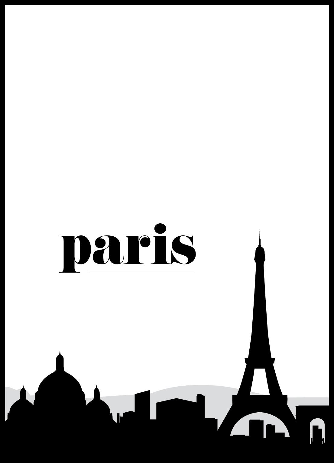 Öppna upp för dagdrömmar om att du spatserar längs Champs-Élysées med en picknickkorg i handen och basker på huvudet. Denna grafiska poster fångar den rätta känslan av Paris och blir ett smakfullt inslag i inredningen. Affischen är vit med ett ljusgrått, böljande landskap i bakgrunden och en svart siluett i förgrunden. I siluetten kan du urskilja bland annat Sacré-Cœur, Eiffeltornet och Triumfbågen. Mot det vita finns ”Paris” tryckt med svarta bokstäver. Komplettera med ram och passepartout i svart och vitt eller kör på en fin färg för en uppiggande känsla. Paris Skyline II finns i 6 olika storlekar och prisklasser.