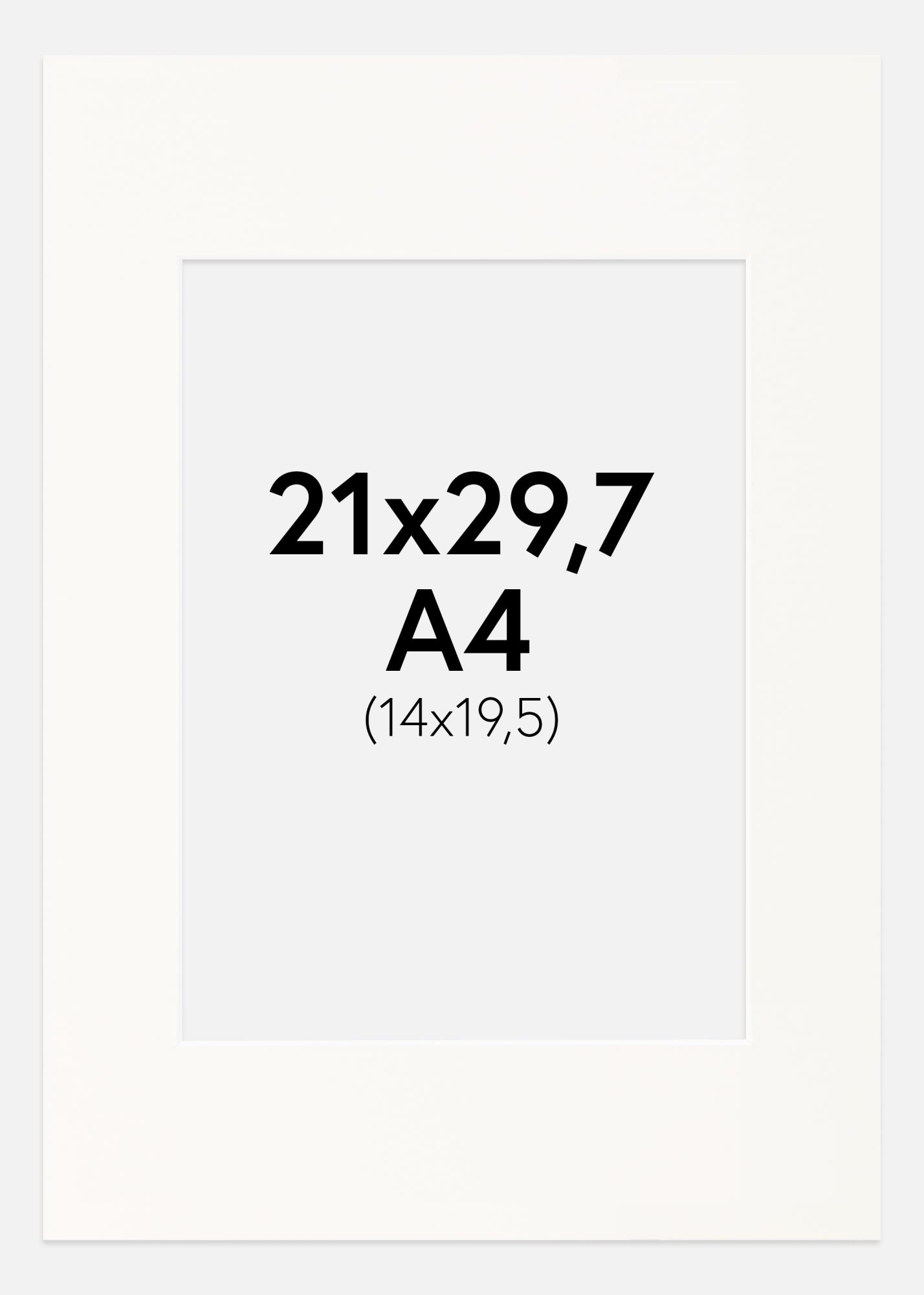Komplettera din ram med en ljus passepartout för en luftig och exklusiv känsla som ger ditt motiv en stilfull inramning. Du skyddar samtidigt motivet mot tidens påverkan genom att skapa ett utrymme mellan bild och ramglas. Denna fina passepartout passar till en ram i 21x29,7 (A4) cm och har ett innermått på 14x19,5 cm.