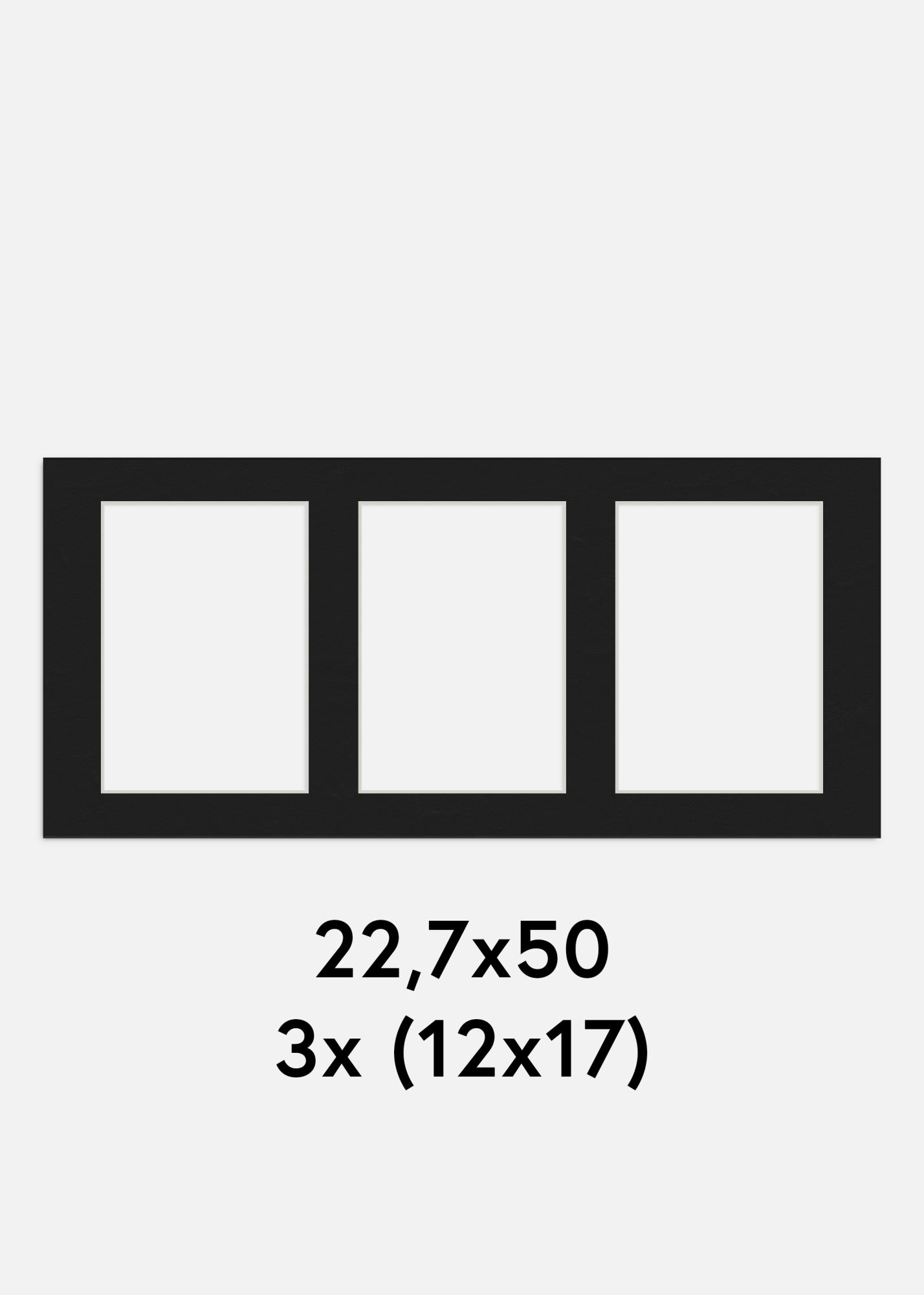 Passepartout Svart 22,7x50 cm - Collage 3 Bilder (12x17 cm)