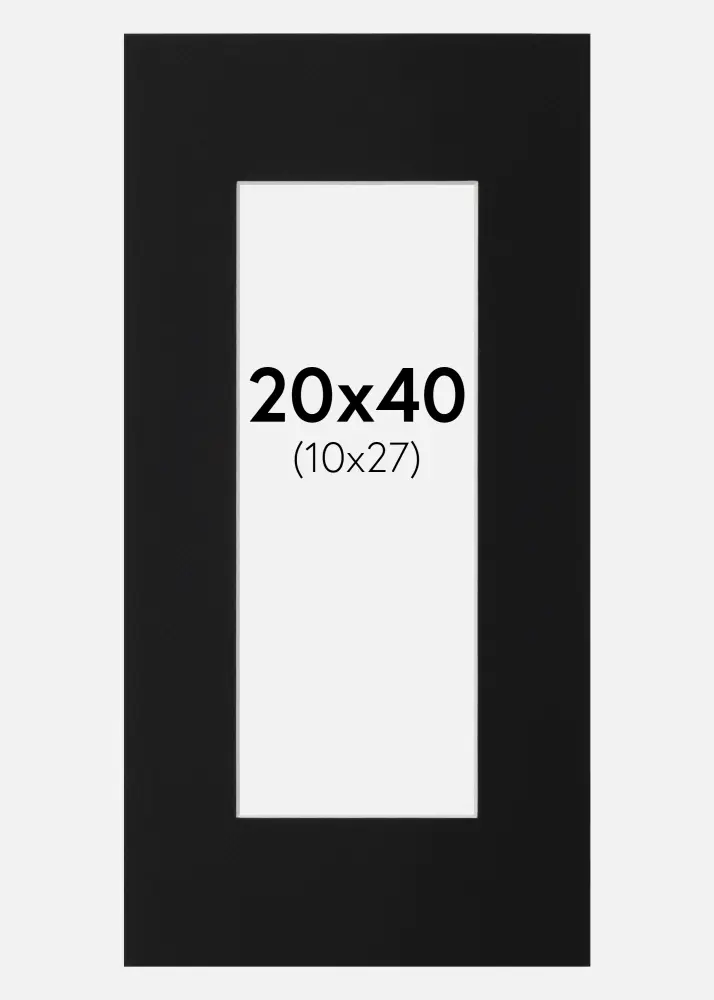 Passepartout Svart Standard (Vit Kärna) 20x40 cm (10x27)