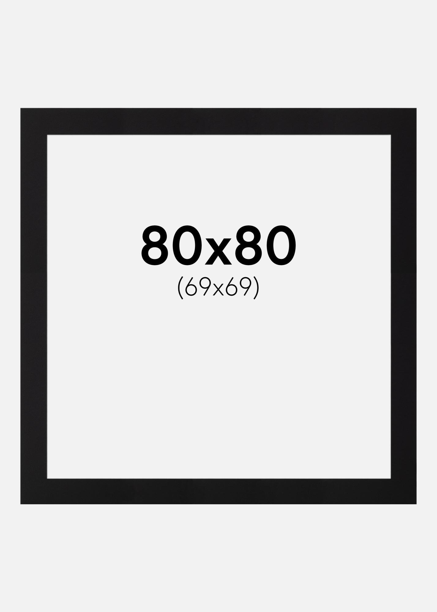 Passepartout Svart Standard (Vit kärna) 80x80 cm (69x69)