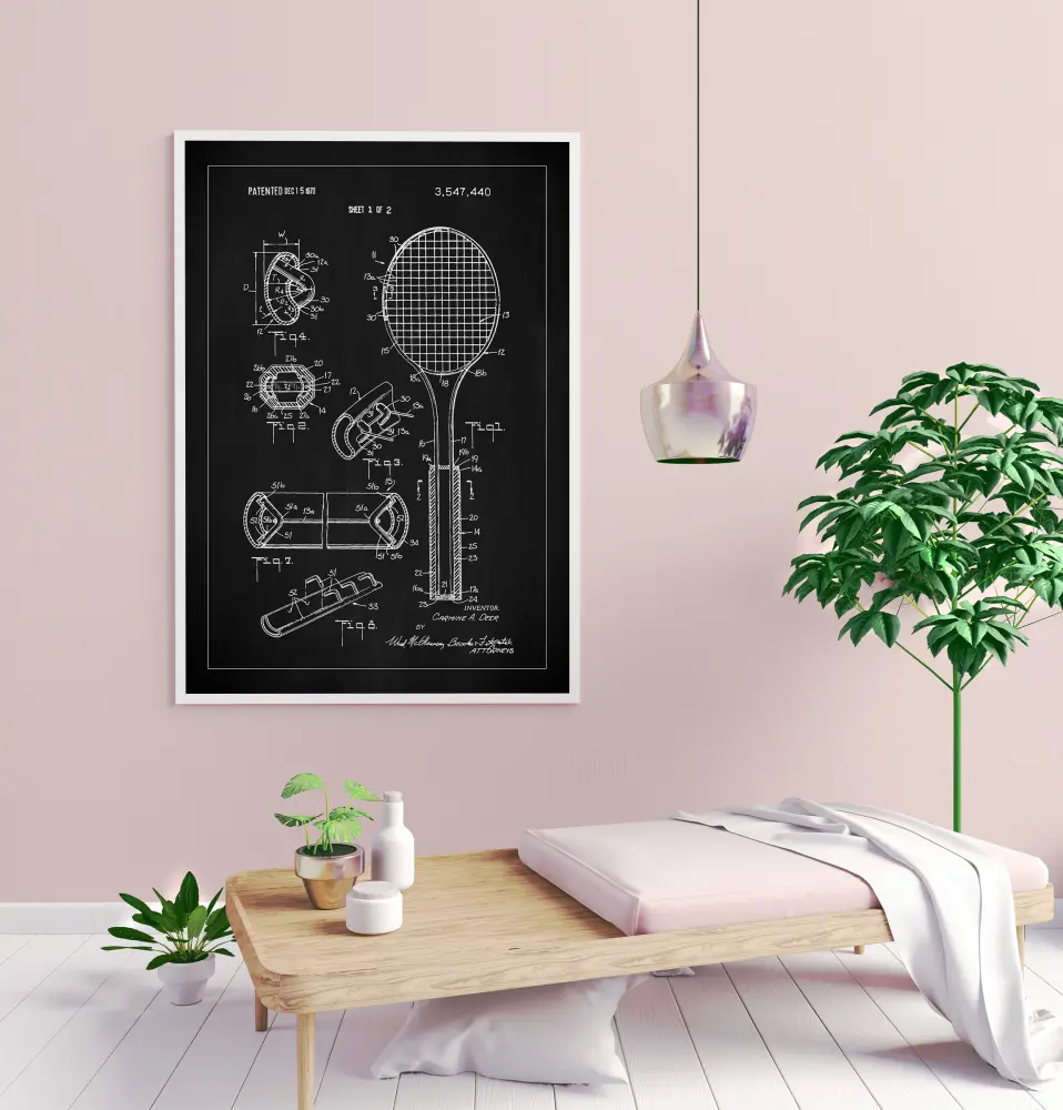 Patent Print - Tennis Racket - Black Poster (40x50 cm)