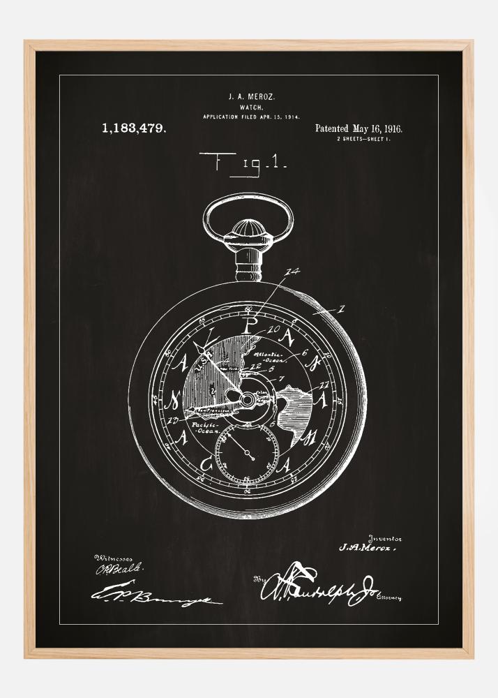 Patentritning - Fickur - Svart Poster (30x40 cm)