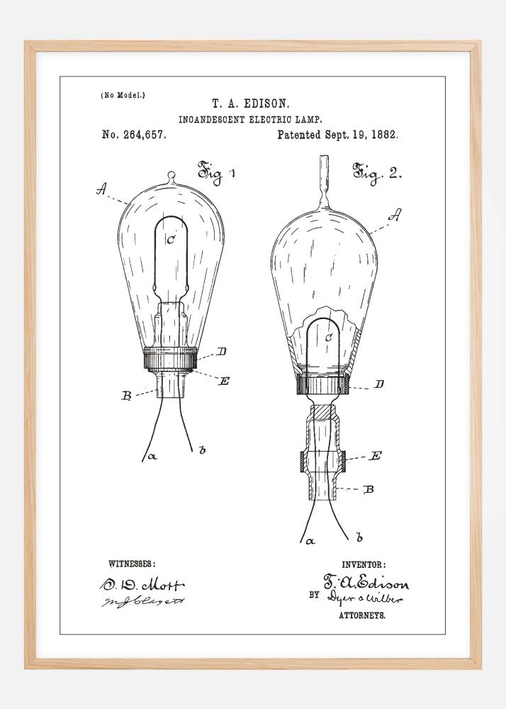 Patentritning - Glödlampa A - Vit Poster