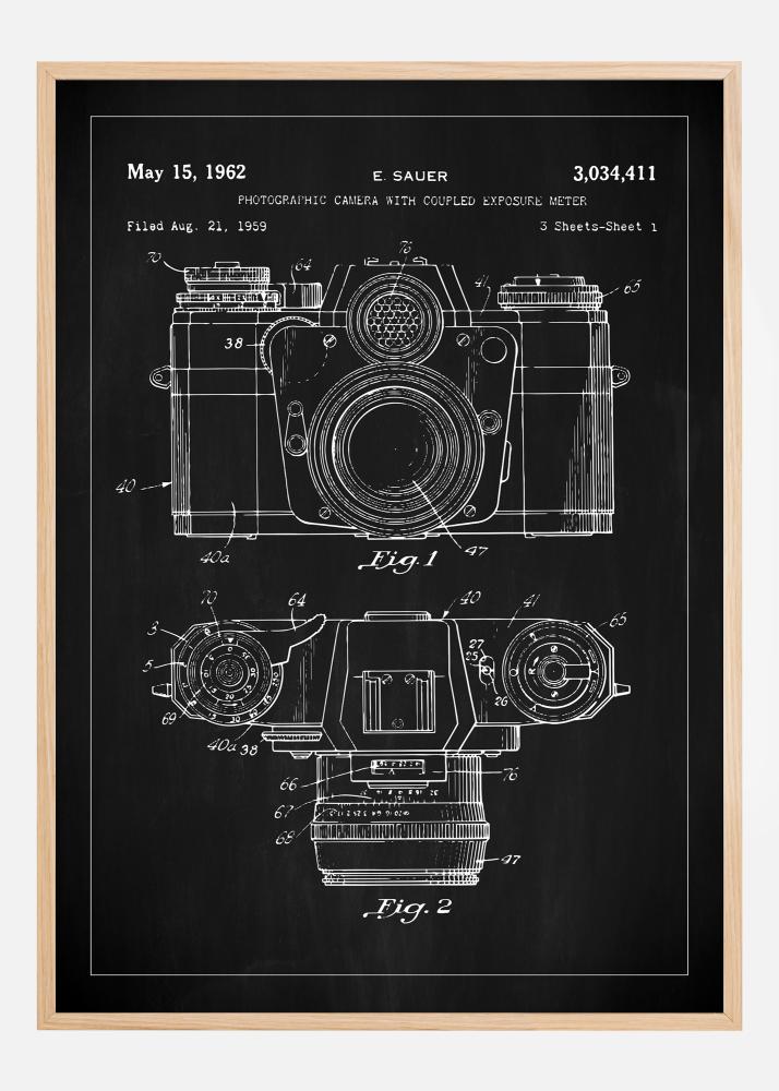 Posterns noggrannhet i framställningen av varje detalj och komponent i kameran gör den till en idealisk väggdekoration för fotografer, teknikentusiaster, och alla som har en uppskattning för historisk teknologi. Det är en hyllning till de genombrott inom fotografi som har format vårt sätt att fånga och bevara våra mest värdefulla ögonblick. Denna patent affisch är inte bara en stilfull tillgång till en samlings inredning, utan också ett stycke av den visuella konstens historia.
