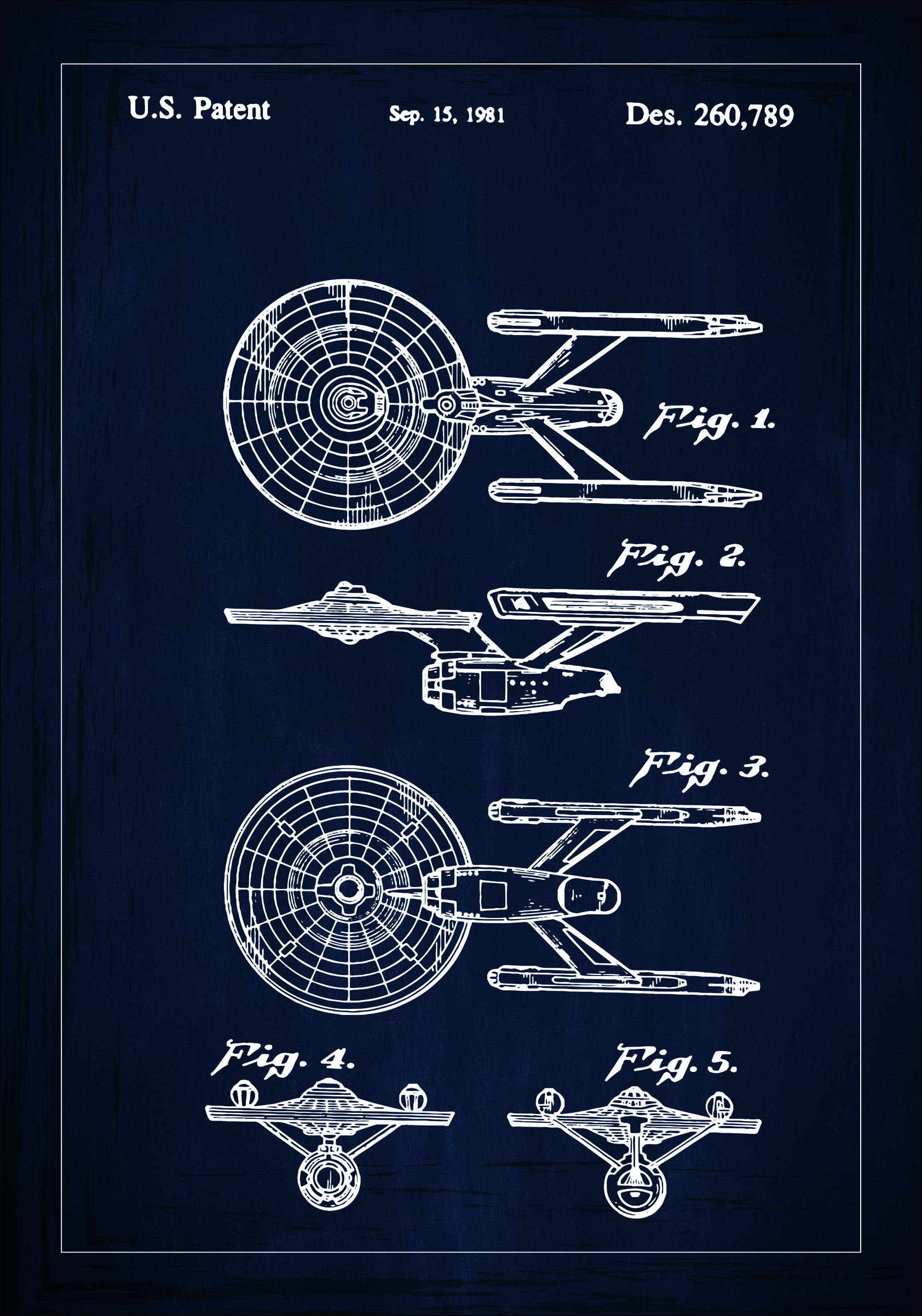 Patentritning - Star Trek - USS Enterprise - Blå Poster