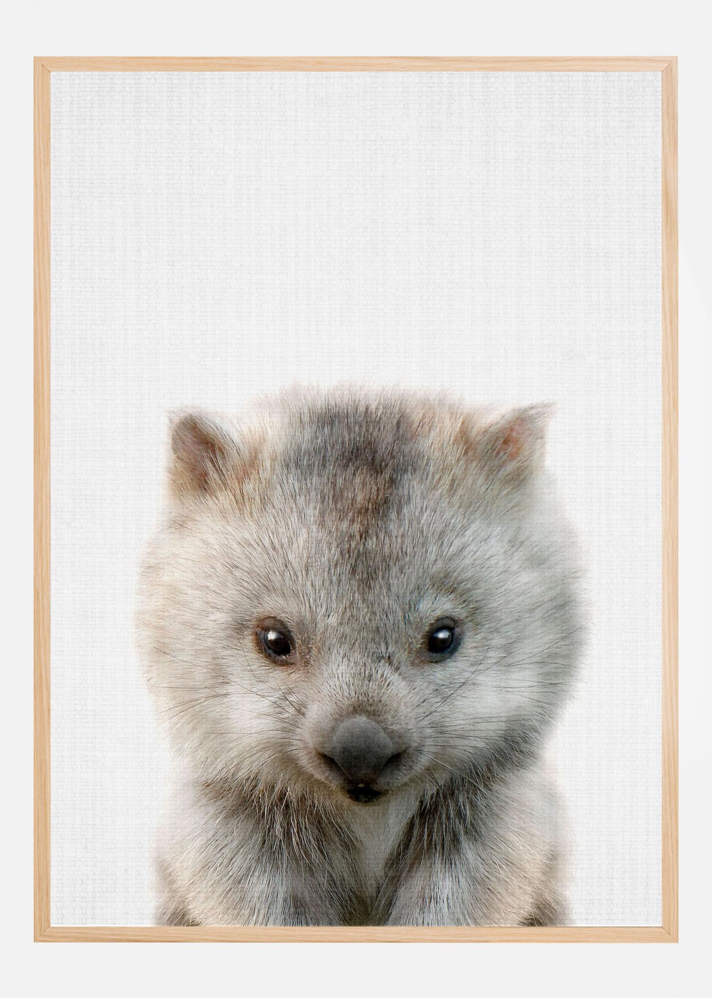 Färgerna i denna poster består av en mjuk palett som återspeglar vombaternas naturliga habitat. Motivet framhäver djurets mjuka päls i nyanser av grått och beige, med delikata inslag av vitt runt nospartiet och ögonen vilket ger ett mycket livfullt utseende. Denna affisch är perfekt för den som vill tillföra en känsla av natur och lugn till sitt hem eller kontor, samt en fantastisk present för varje djurälskare.