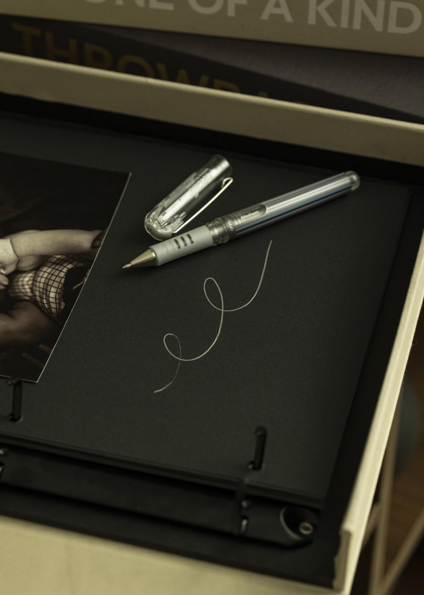 Penna från Pentel med metallic silverfärg. Pennan har en spetsbredd på 1 mm.