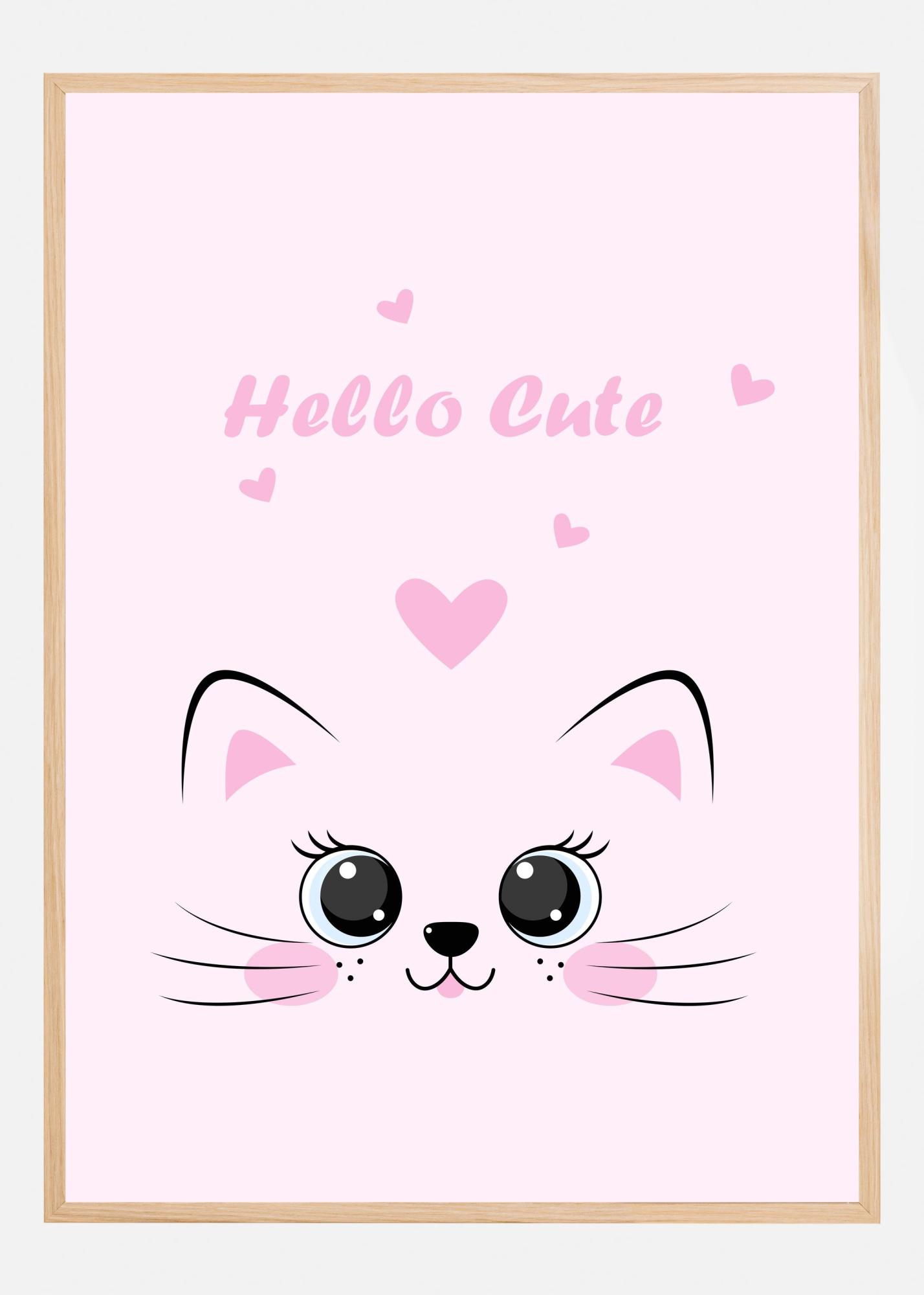 Denna charmiga poster är en riktig blickfångare för de som älskar lekfulla och söta motiv. Motivet består av en bedårande tecknad katt med stora, uttrycksfulla ögon som ser direkt in i betraktarens själ. Omgiven av flera flytande hjärtan och texten "Hello Cute" ovanför huvudet, är denna print perfekt för att sprida en varm och välkomnande känsla i vilket rum den än placeras. Den lämpar sig särskilt bra i barnrum eller andra utrymmen där en gnutta oskuld och glädje är önskvärd.