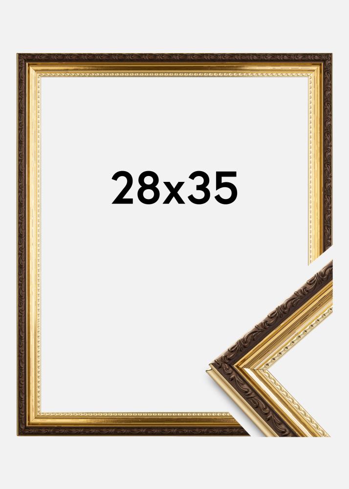 Letar du efter en vackert dekorerad ram i en äldre stil? Abisko Akrylglas Guld är en rejäl guldram med otroligt stilfulla ornament. Ramens 25 mm breda list har en blank guldfärg med en utsmyckad brun bård i mitten. Även gulddelen är utsmyckad, med ett böljande mönster närmast glaset.