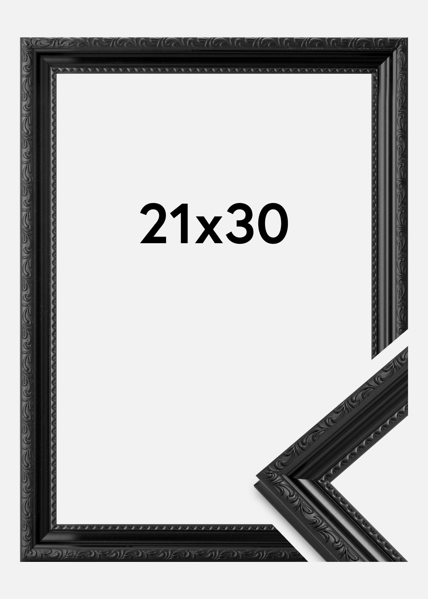 Abisko Akrylglas Svart är en stilfull ram av hög kvalitet, tillverkad i Sverige. Den svarta tavelramen är utsmyckad med dekorativa mönster, både längst ut på ramen och närmast bilden. Den vackra utsmyckningen på den 25 mm breda ramlisten gör den till ett elegant tillskott i ditt hem, som perfekt kompletterar både klassiska och moderna motiv. Kanske har du en häftig poster med ett abstrakt mönster du vill hänga upp? Eller ett svartvitt fotografi?