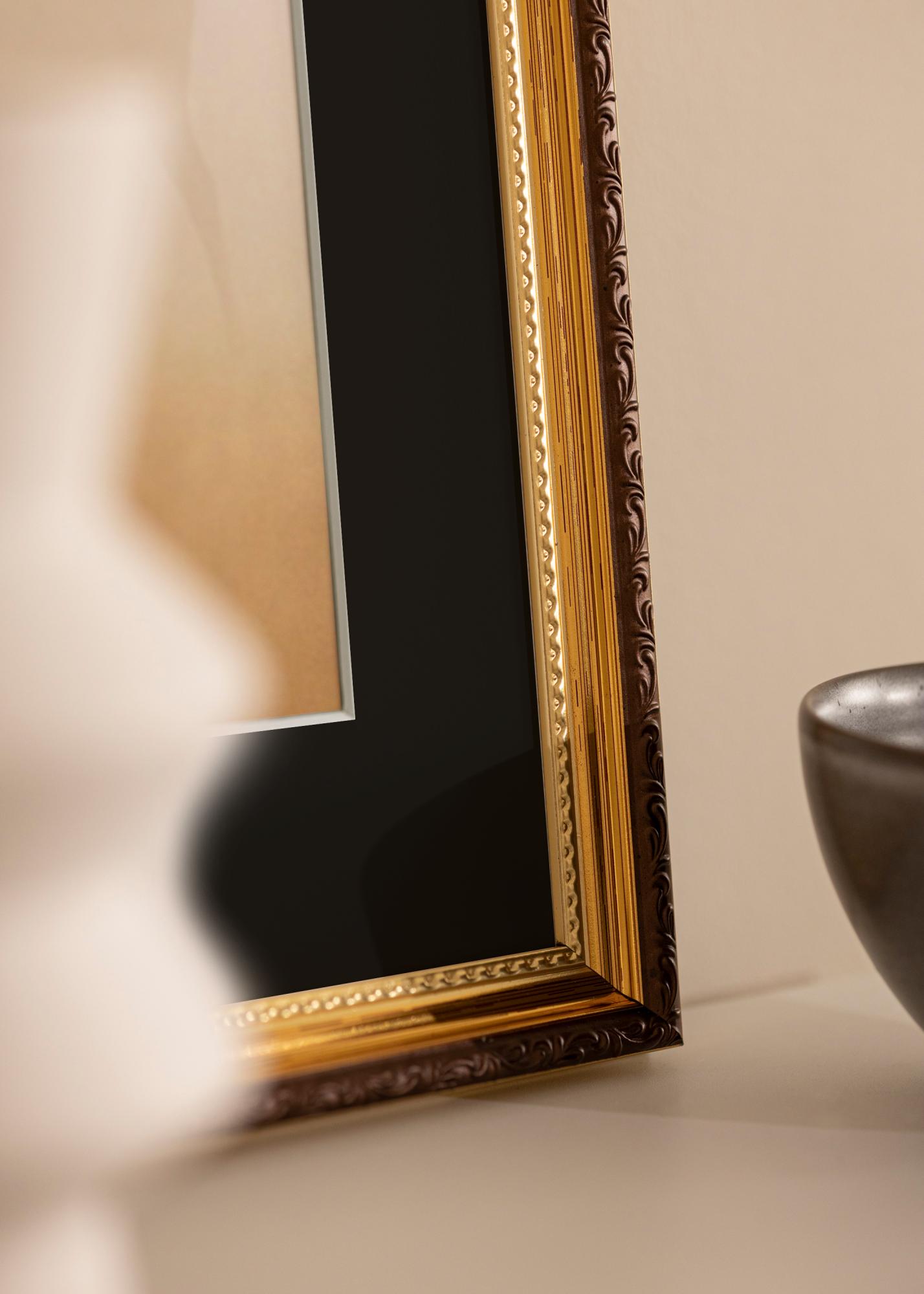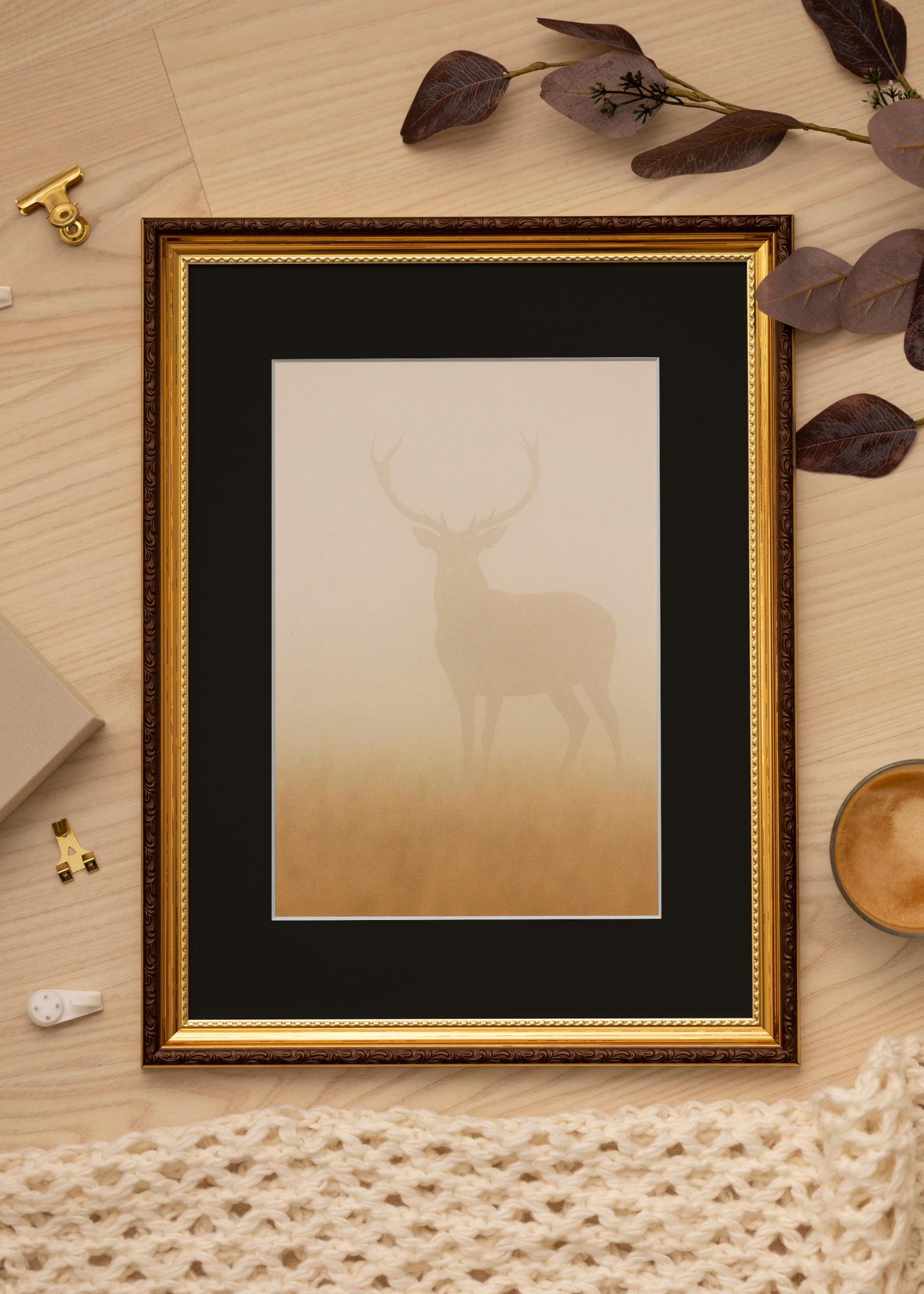 Ge dina favoritbilder den uppmärksamhet de förtjänar med en elegant guldram, komplett med svart passepartout. Denna sofistikerade ram är perfekt för att framhäva din bild i storleken 18x27 cm, och dess blanka yta tillför en lyxig touch till din väggdekoration. Med en ramens bredd på 25 mm och ett djup på 20 mm skapar den en imponerande närvaro utan att ta över rummets övriga inredning.