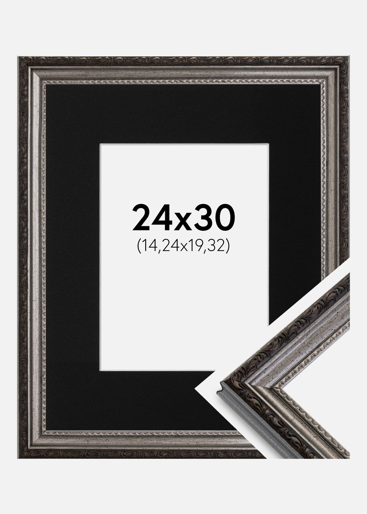 Ram Abisko Silver 24x30 cm - Passepartout Svart 6x8 inches