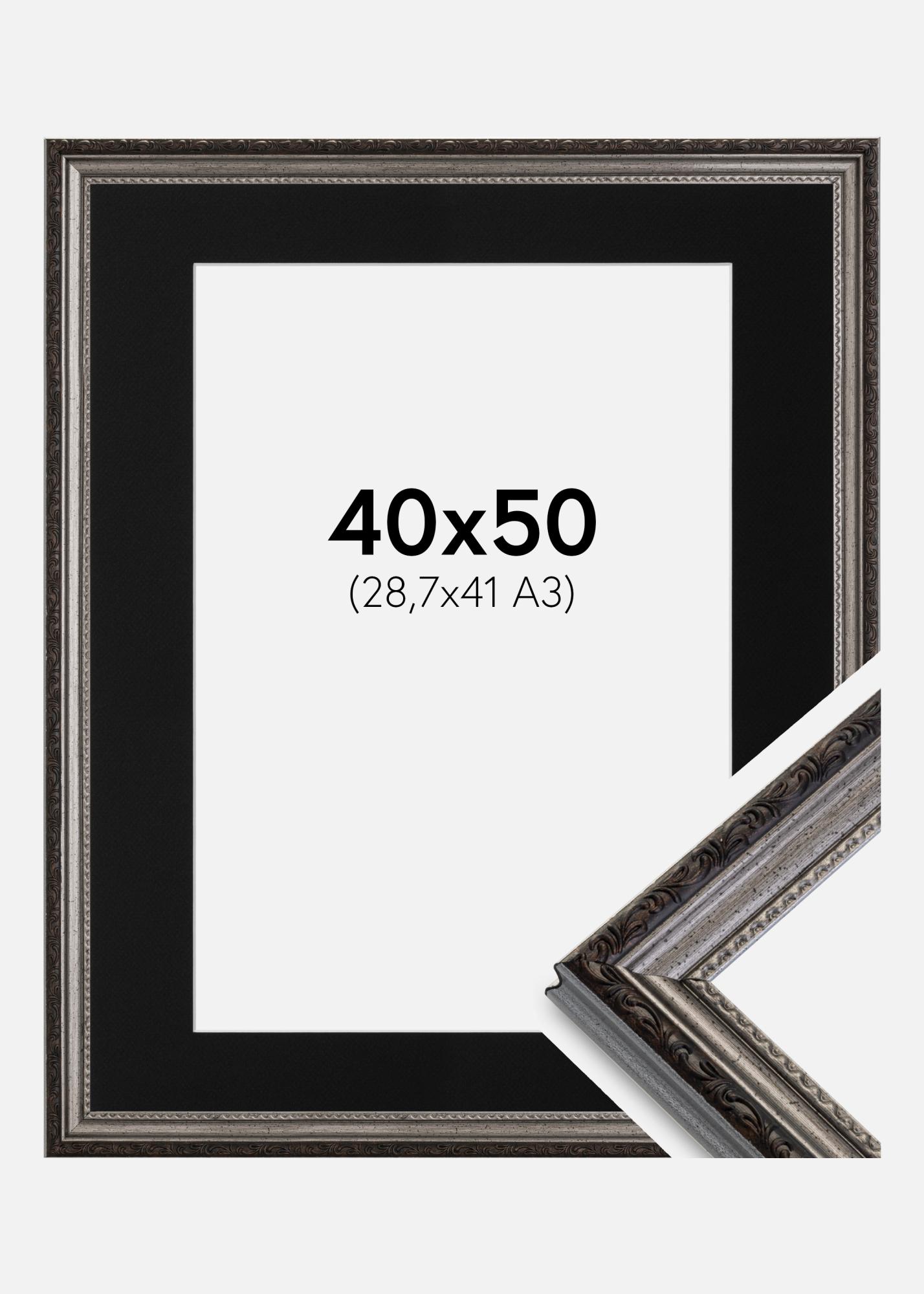 Ram Abisko Silver 40x50 cm - Passepartout Svart 29,7x42 cm (A3)