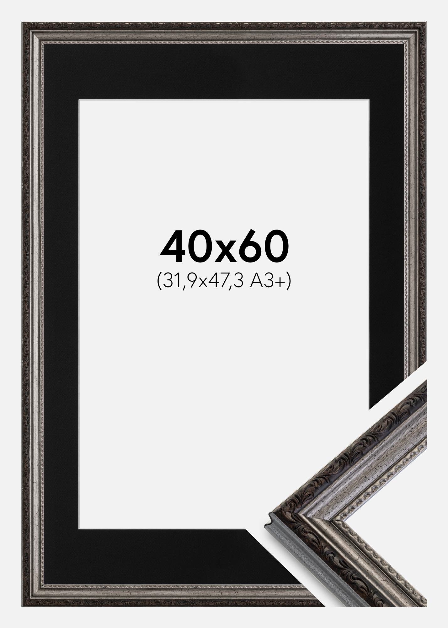 Ram Abisko Silver 40x60 cm - Passepartout Svart 32,9x48,3 cm (A3+)